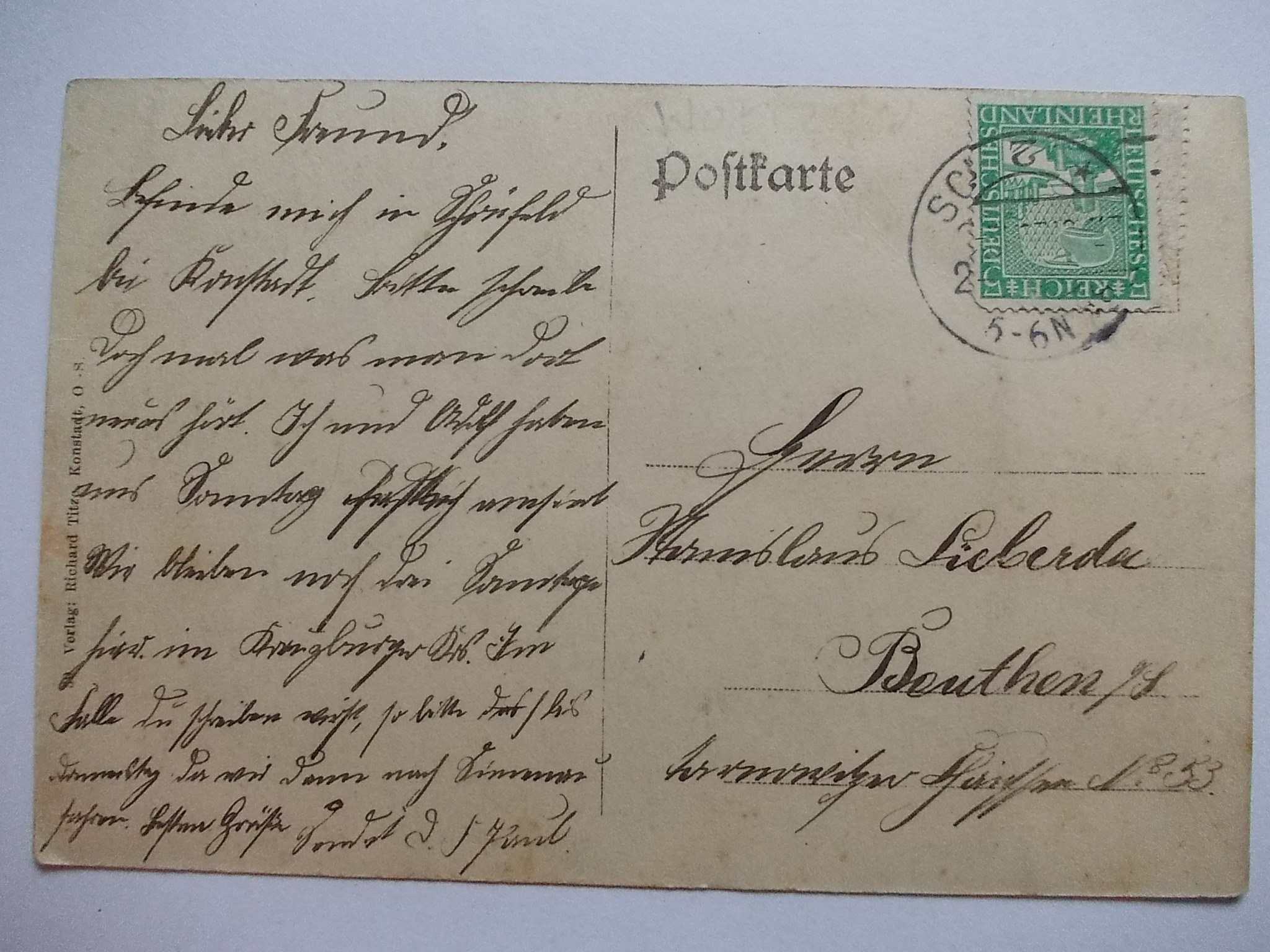 Przedmiotem licytacji jest oryginalna pocztówka. Stan zachowania oraz obieg widoczny na fotografiach, brak wad ukrytych