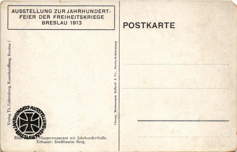 Wroclaw, Breslau; Hauptrestaurant mit Jahrhunderthalle, Ausstellung zur Jahrhundertfeier der Freiheitskriege Breslau 1913. Verlag Th, Lichtenberg / exhibition, restaurant (EM)