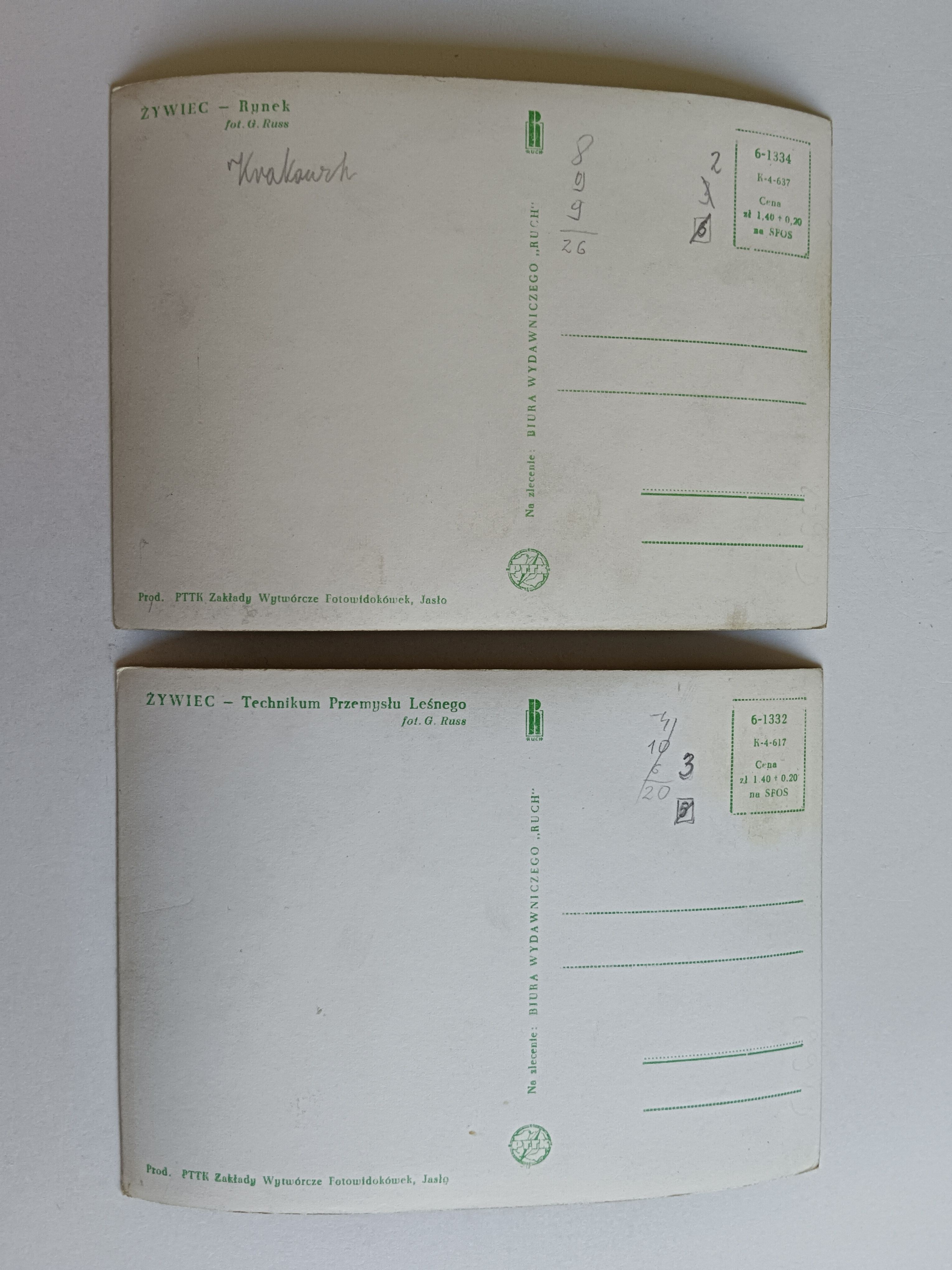 ZESTAW 2 POCZTÓWEK PRL ŻYWIEC, TECHNIKUM PRZEMYSŁU LEŚNEGO, RYNEK