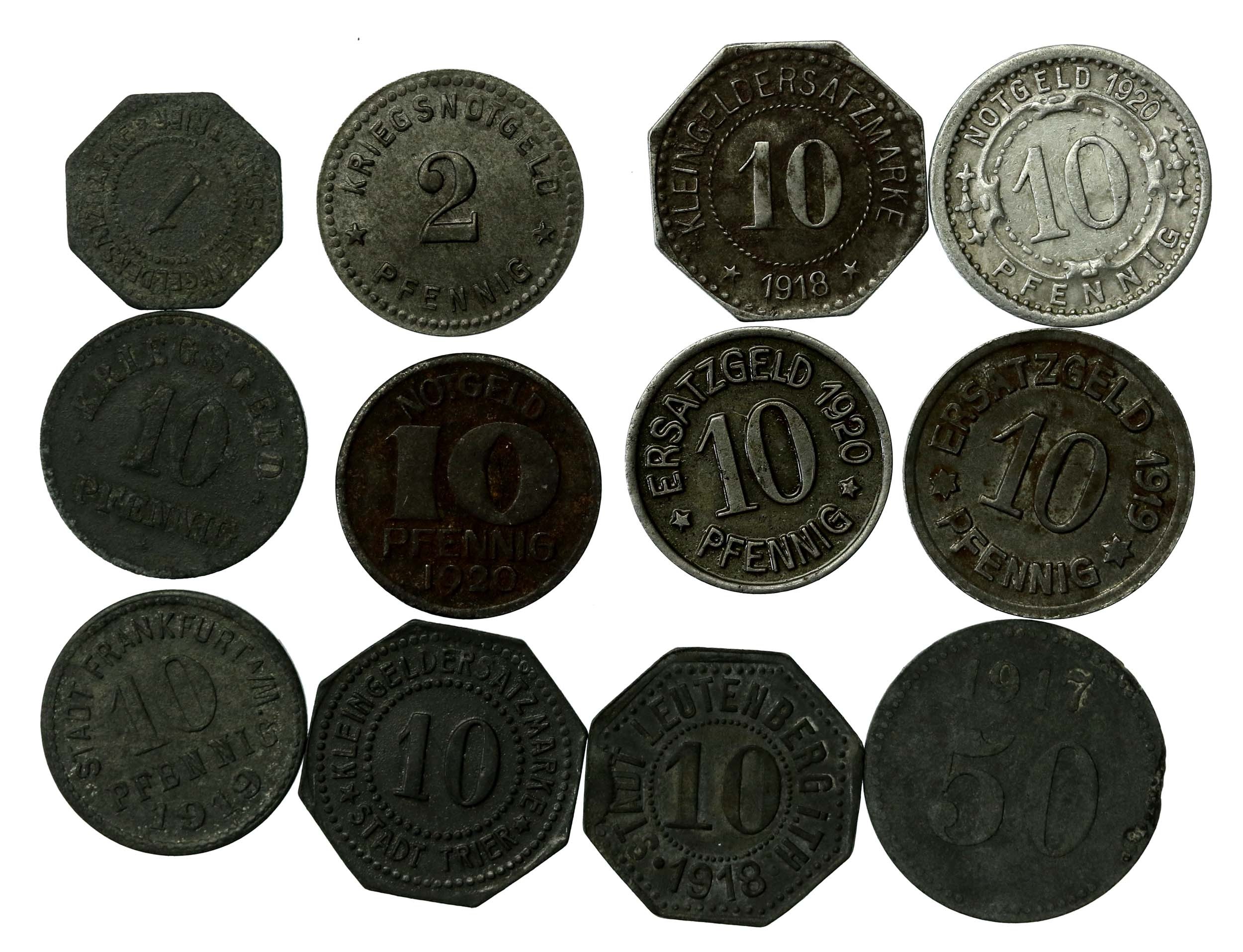 Polska, Niemcy, zestaw monet zastępczych. Razem 12 szt. Różne stany zachowania.