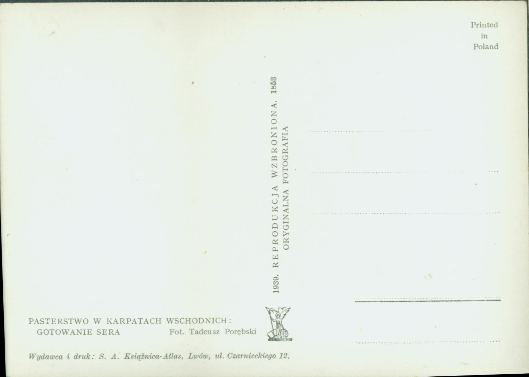 HUCULSZCZYZNA – Pasterstwo w Karpatach Wsch., Gotowanie sera, Fot. Tad. Porębski, 1853, Wyd. Książnica-Atlas, Lwów, fot. czb., 1939