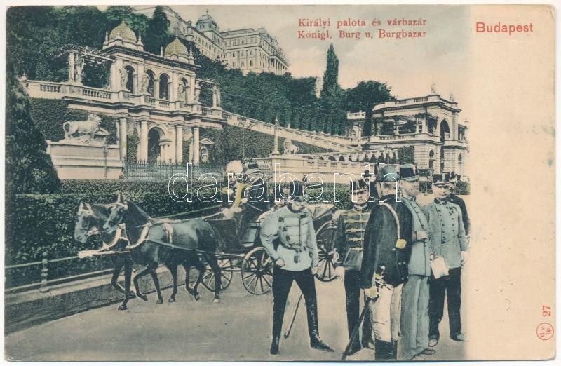 1901 Budapest I. Királyi palota és Várbazár. Montázs Ferenc Józseffel és katonatisztekkel (fa...