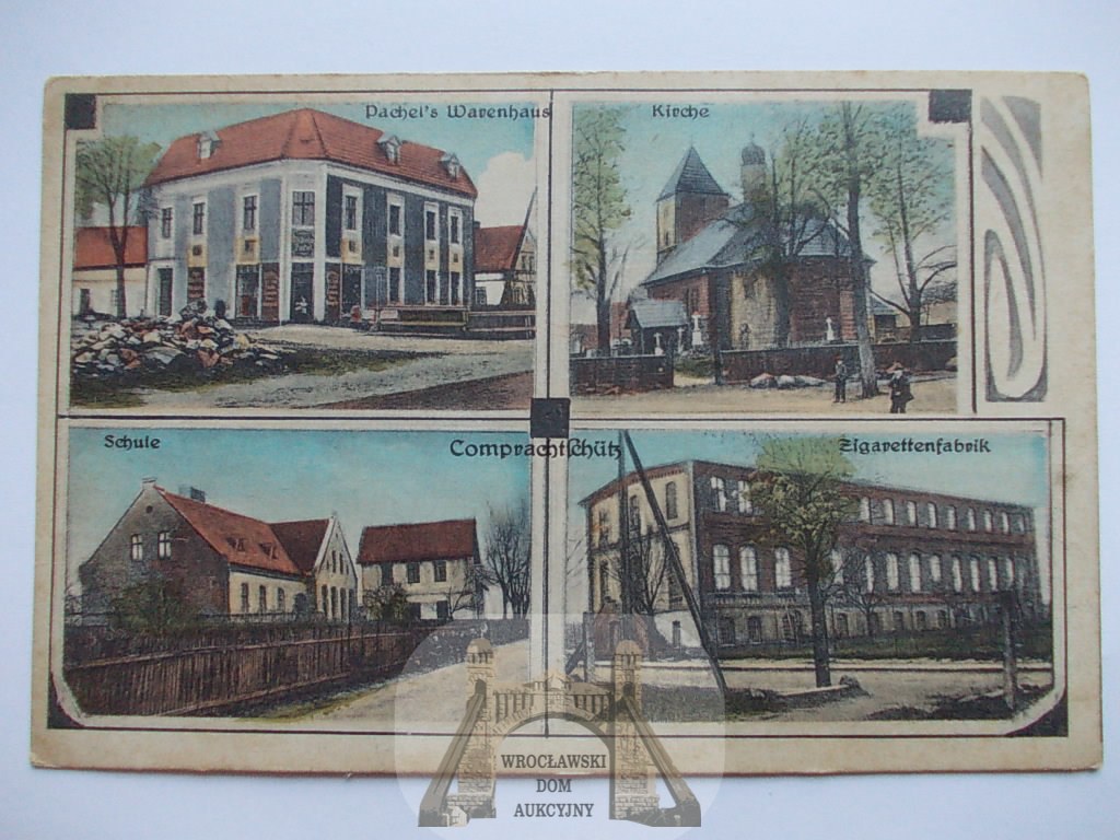 Komprachcice k. Opole, kościół, sklep, szkoła, fabryka, 1921
