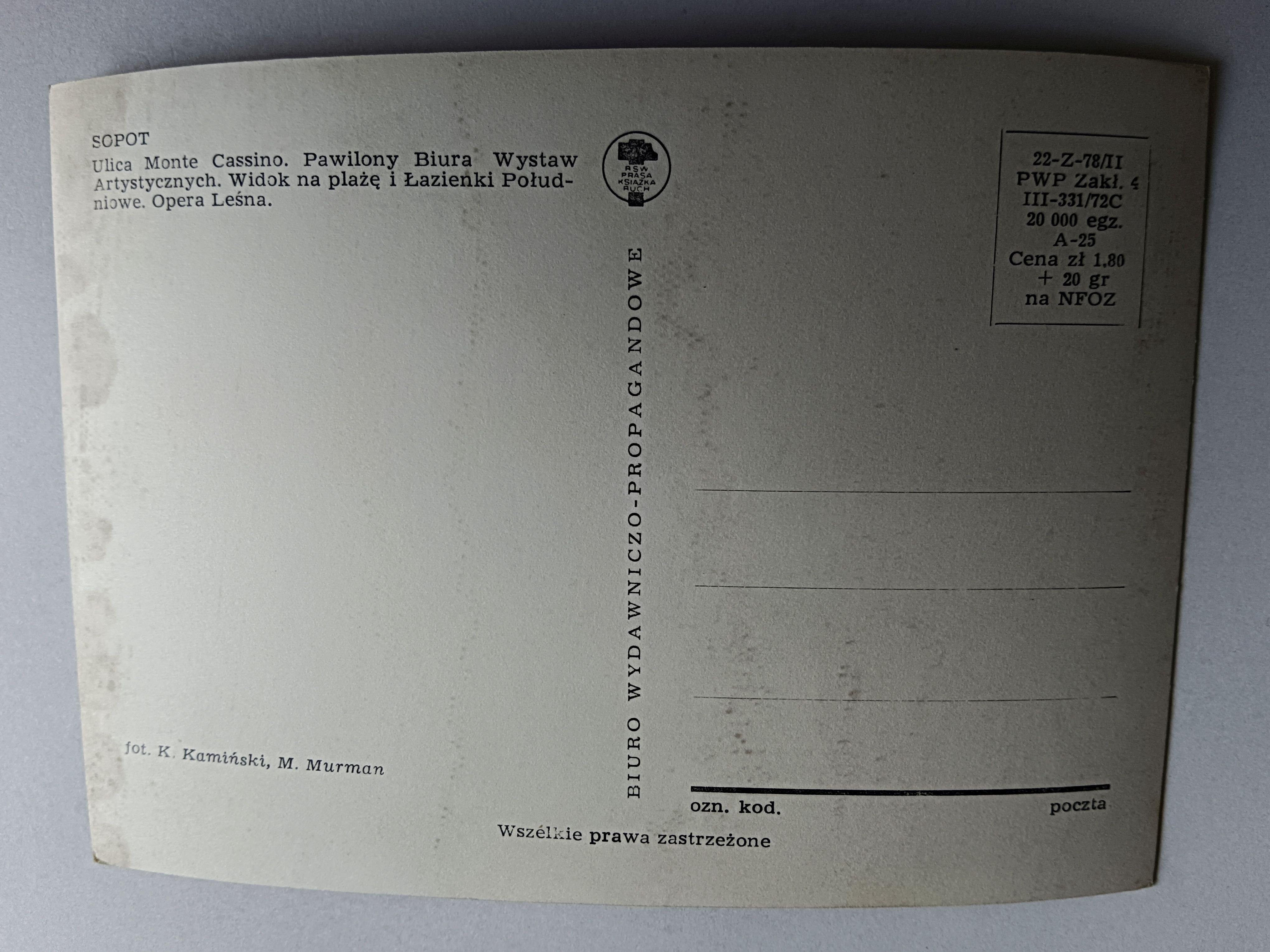 POCZTÓWKA PRL SOPOT ULICA MONTE CASSINO, OPERA LEŚNA
