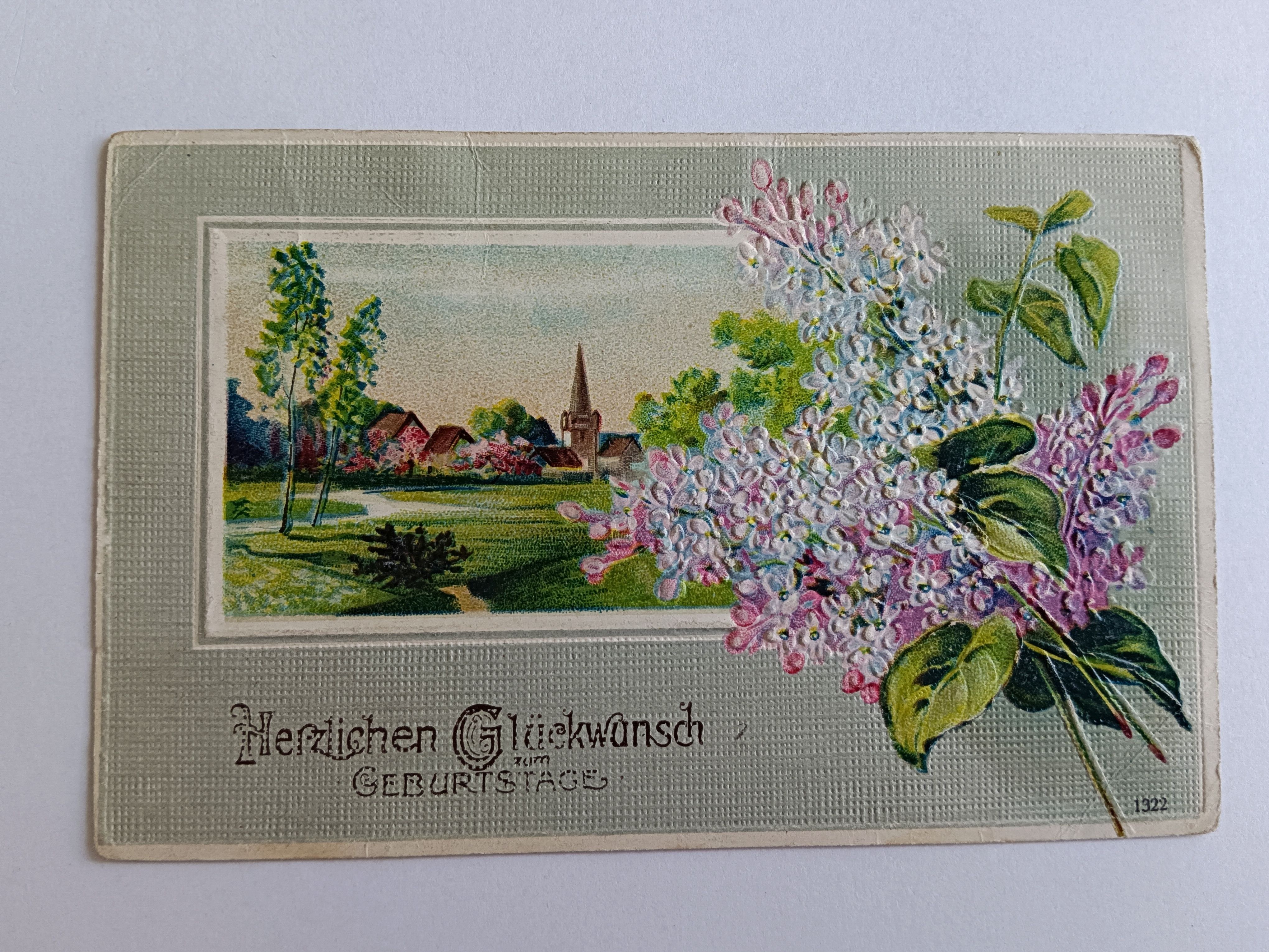 POCZTÓWKA WYTŁACZANA PRZEDWOJENNA, KWIATY, KRAJOBRAZ
