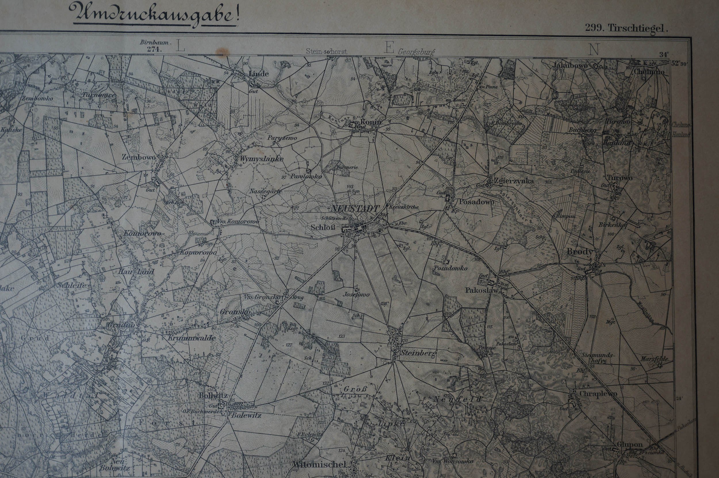 TRZCIEL - Tirschtiegel , Karte des Deutschen Reiches, skala 1: 100.000, f. 43 x 37,5cm, na podstawie mapy z 1891r. ze zmianami, 1896r.