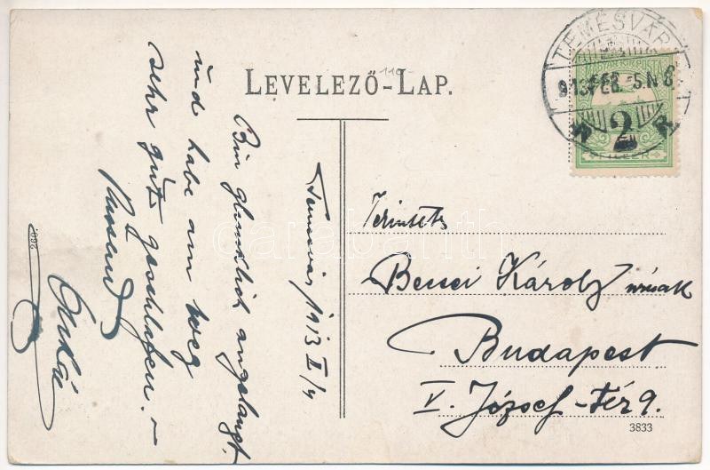 1913 Temesvár, Timisoara; Lloyd palota és tőzsde, villamos Turul Cipő reklámmal. Moravetz Testvérek kiadása / palace, stock exchange, tram with advertisement