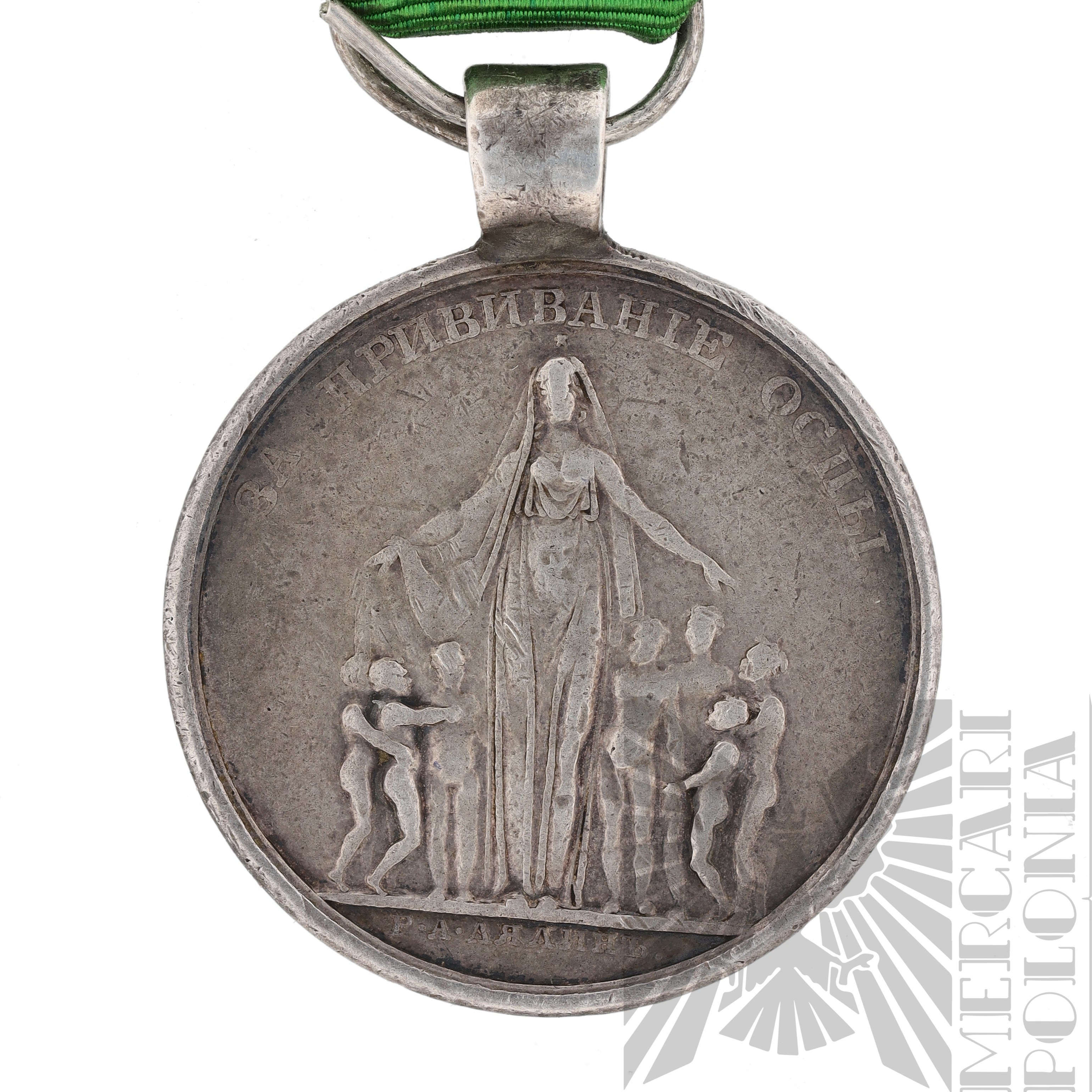 Medal został ustanowiony 16 lutego 1826 roku jako wyróżnienie dla osób szczególnie zasłużonych w szerzeniu szczepień przeciwko ospie w prowincjach Imperium Rosyjskiego. Złote i srebrne egzemplarze przyznawano najwybitniejszym lekarzom i szczepiącym, zgodnie z listami zatwierdzanymi bezpośrednio przez Cesarza. Odznaczenie przeznaczone było do noszenia w dziurce od guzika na zielonej wstążce.