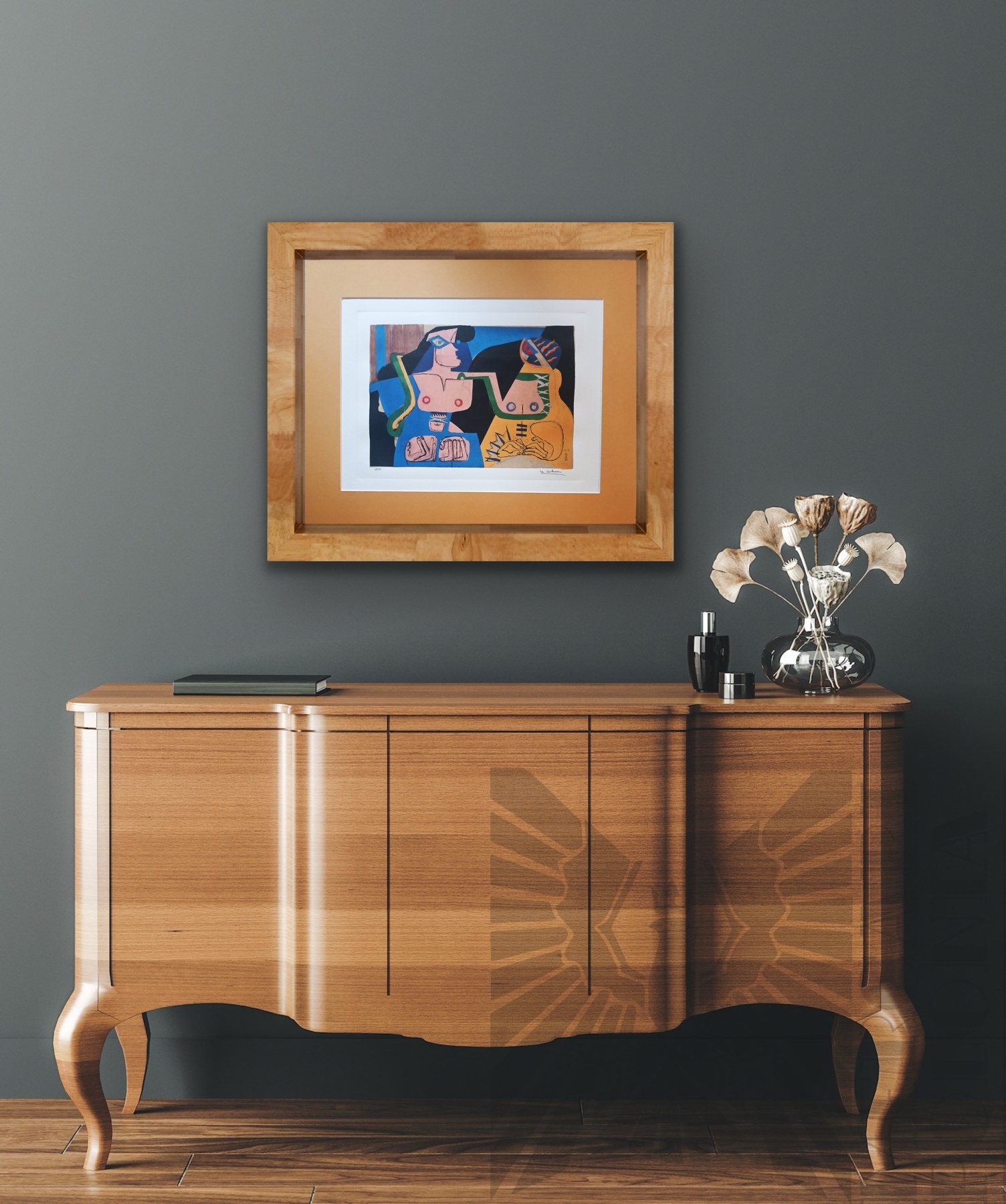heliograwiura barwna, papier welinowy o wysokiej gramaturze, 31 x 23 cm (odcisk płyty), oprawiona w passe – partout o wym. 47 x 37 cm, numerowana odręcznie ołówkiem 6/200, sygn. z płyty pod kompozycją „Le Corbusier”, sucha pieczęć wydawcy l. d.: litera K otoczona słowami „EDITION LIMITED CERTIFIED ARTS USA EUROPE SINCE 1998”.