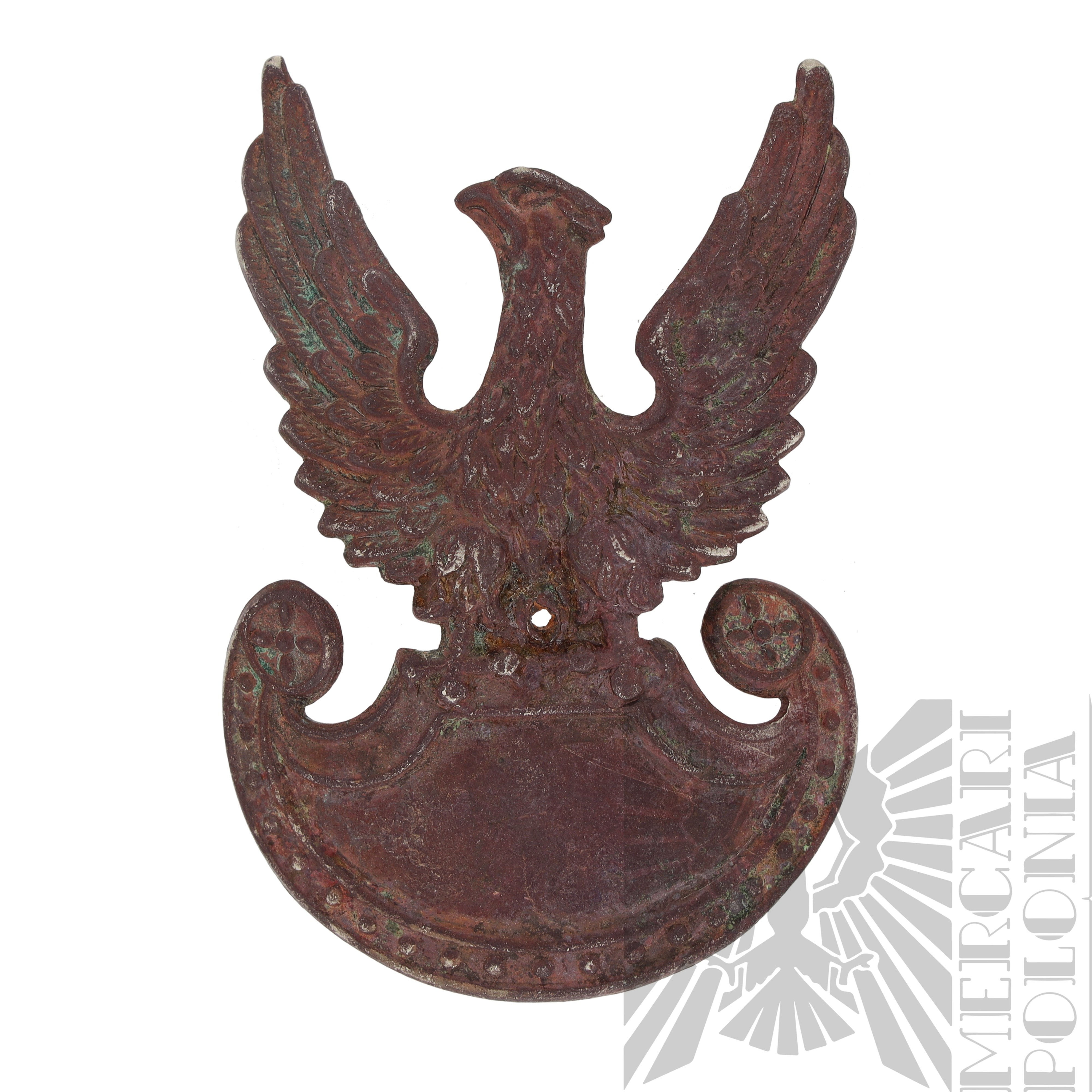 Orzeł używany przez Wojsko Polskie w latach 1919-1939. Stan zachowania dobry. Widoczne resztki srebrzenia. Orły wz.19 były powszechnie używane przez Wojsko Polskie podczas Wojny Obronnej we Wrześniu i Październiku 1939.
