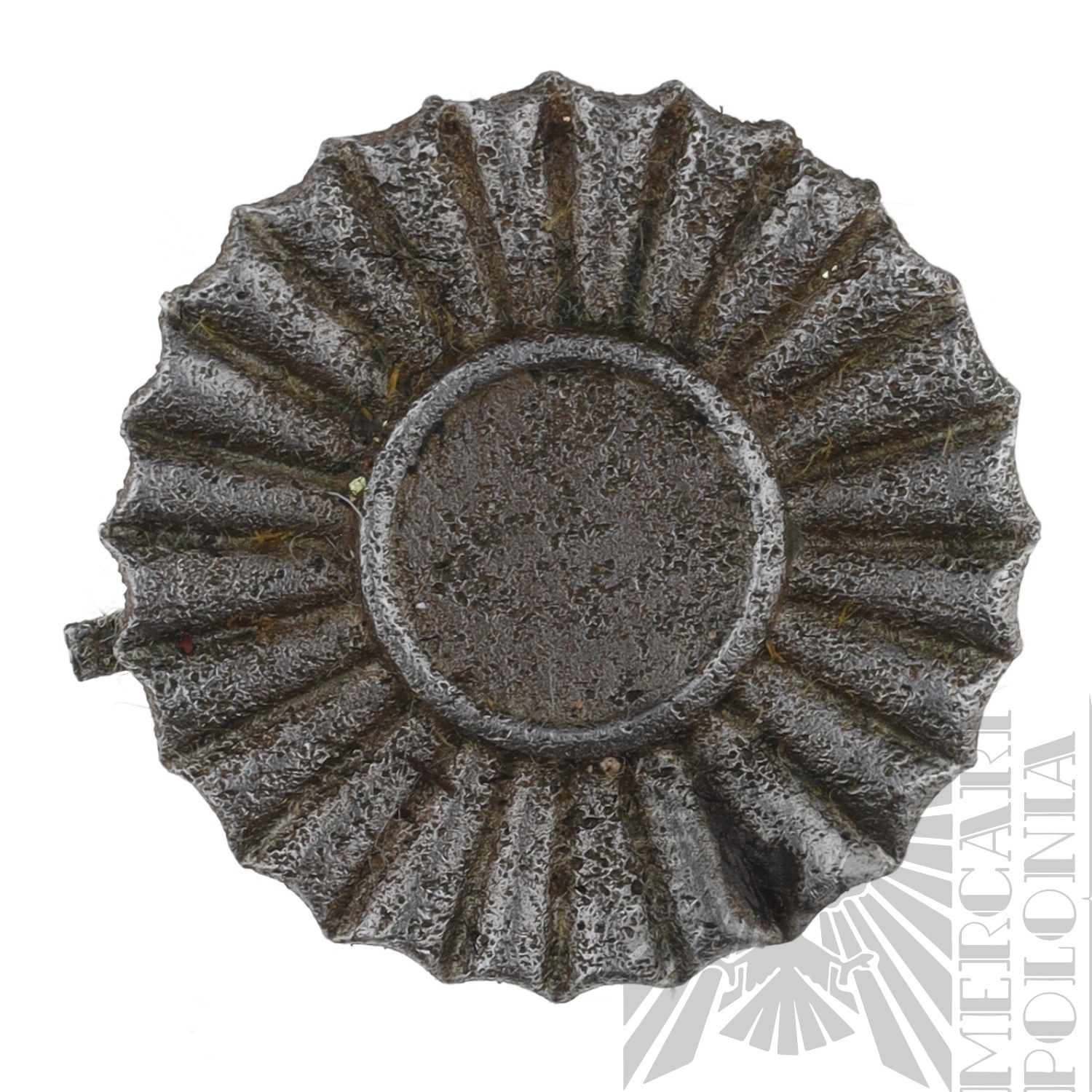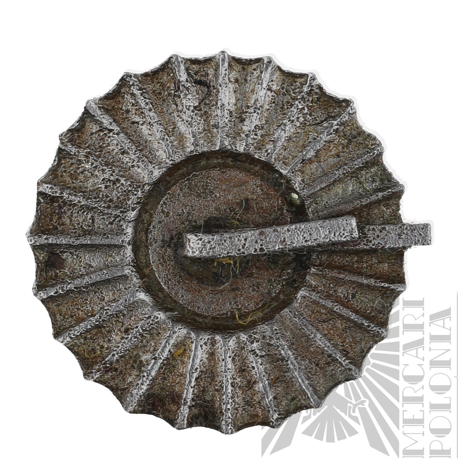 Oficerska rozeta pochodząca z okresu 1917–1920, zachowane wąsy mocujące.