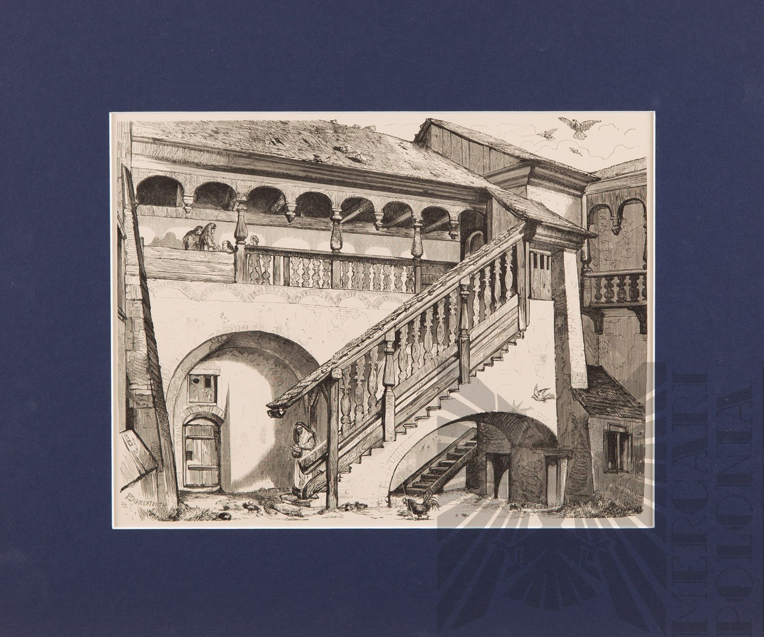 drzeworyt, papier, 25,5 x 33 cm (w świetle passe-partout), sygn. na płycie drzeworytniczej p.d. monogramem wiązanym „JM” oraz przez ksylografa l.d. „P. Dyamentowski”.