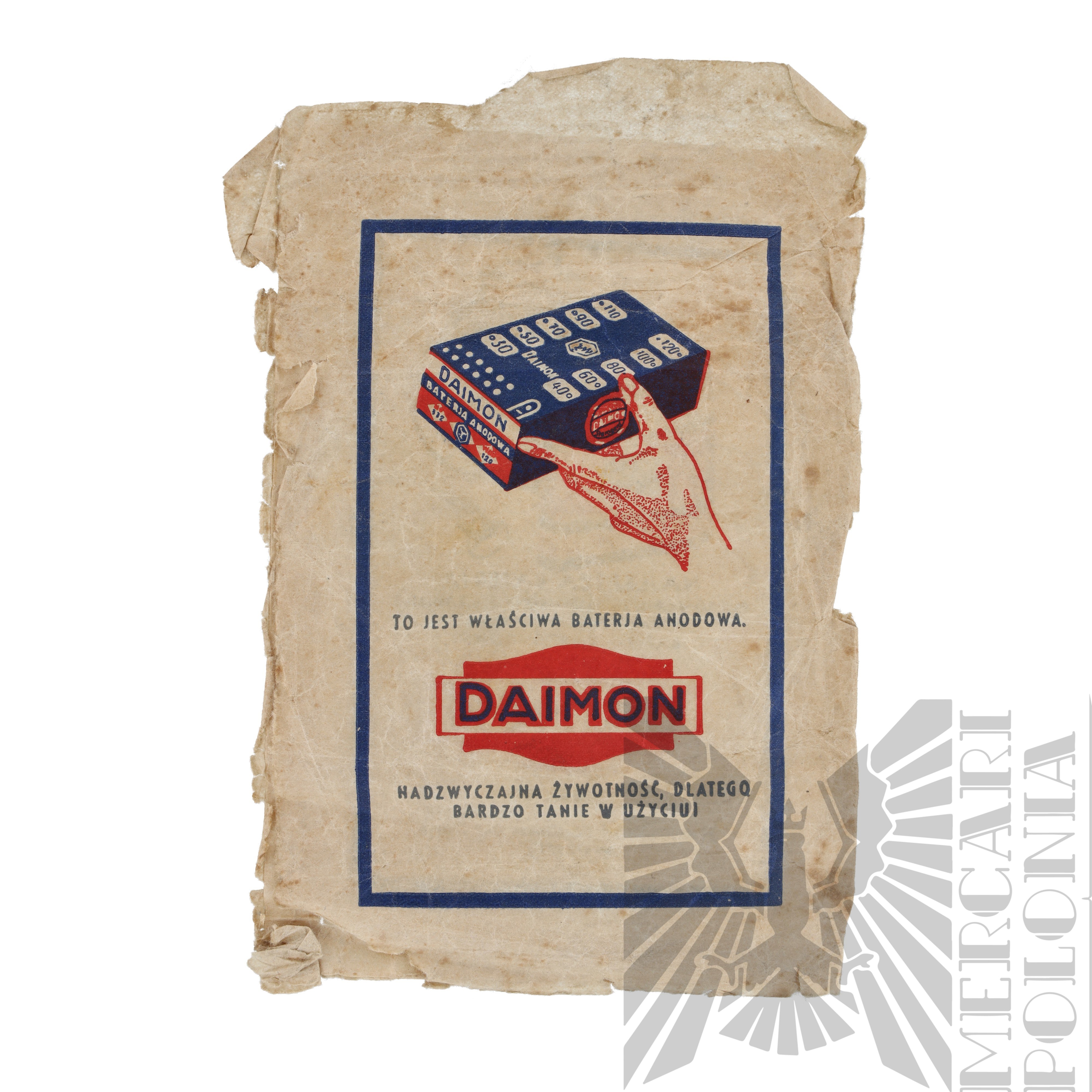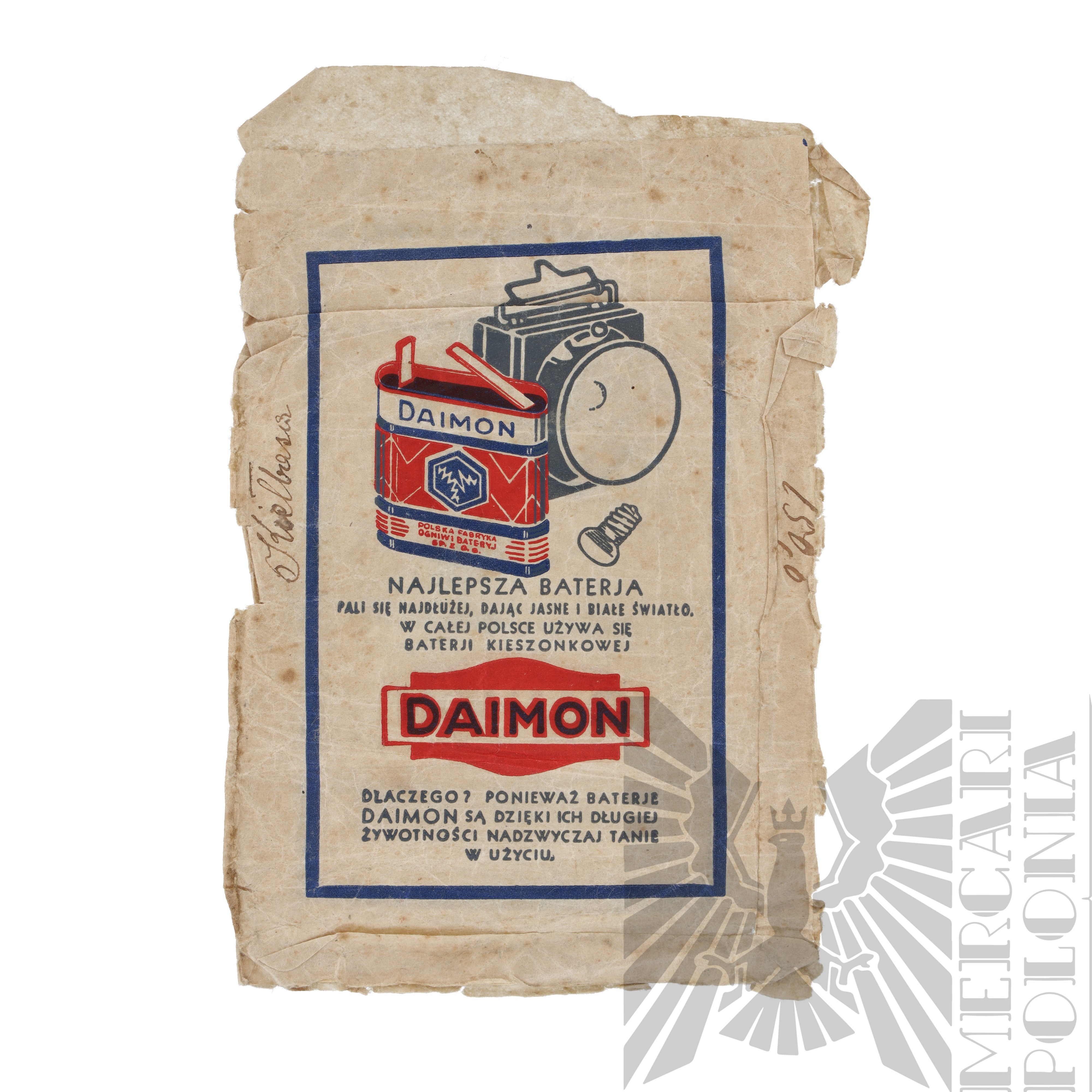 Koperta reklamowa firmy Daimon produkującej latarki oraz baterię do latarek, koperta podpisana przez żołnierza Korpusu Ochrony Pogranicza Batalion “Hoszcza” Stefana Kiełbasę.