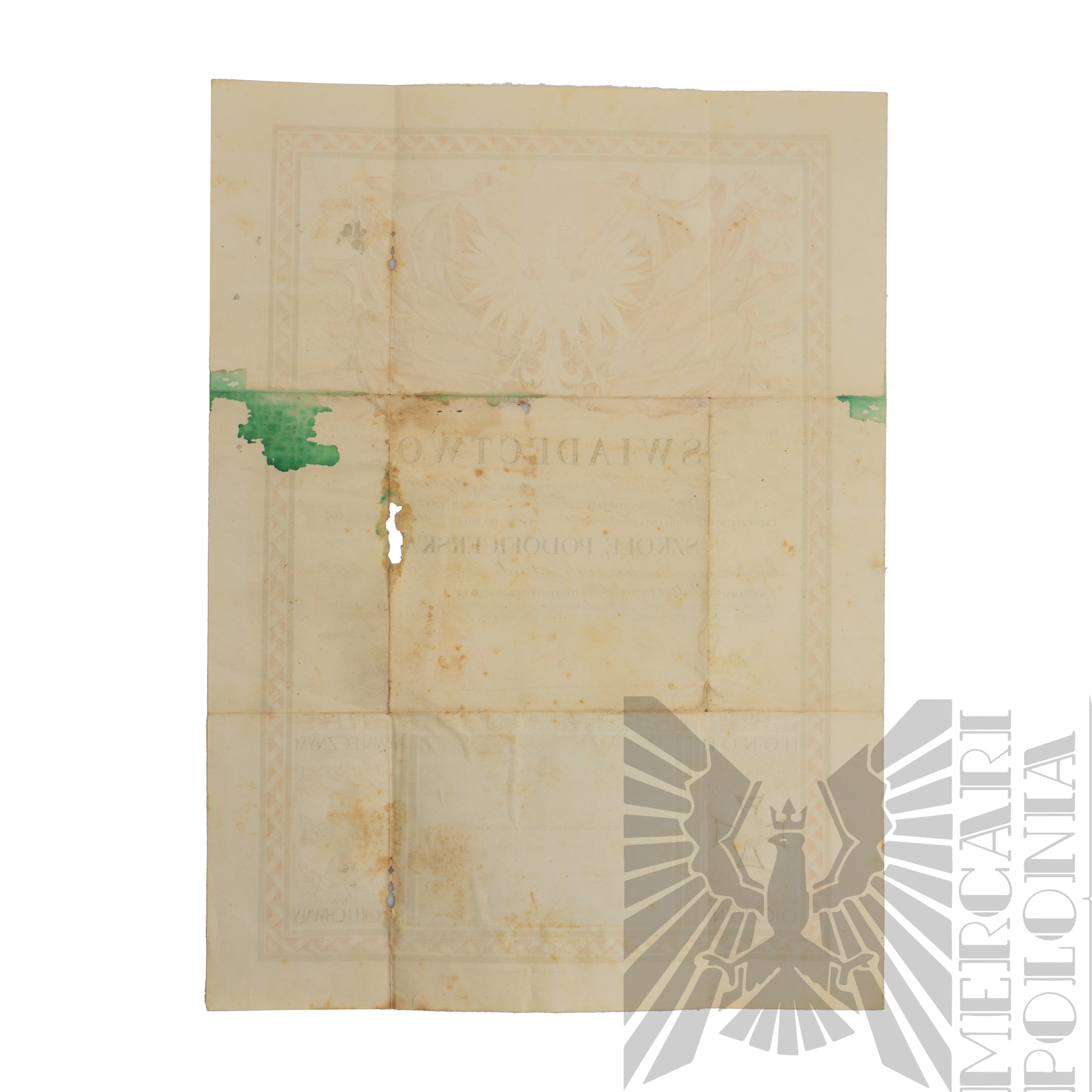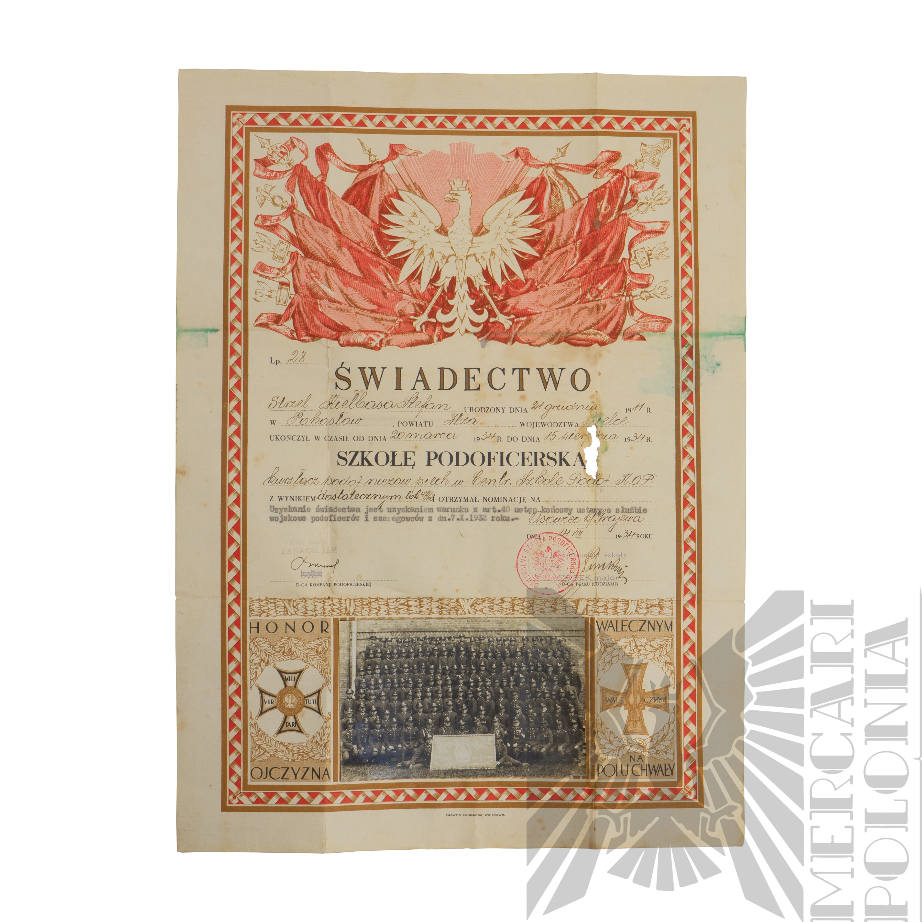 [KIEŁBASA] II RP Świadectwo Ukończenia Centralnej Szkoły Podoficerskiej KOP - Stefan Kiełbasa Korpus Ochrony Pogranicza Batalion “Hoszcza”