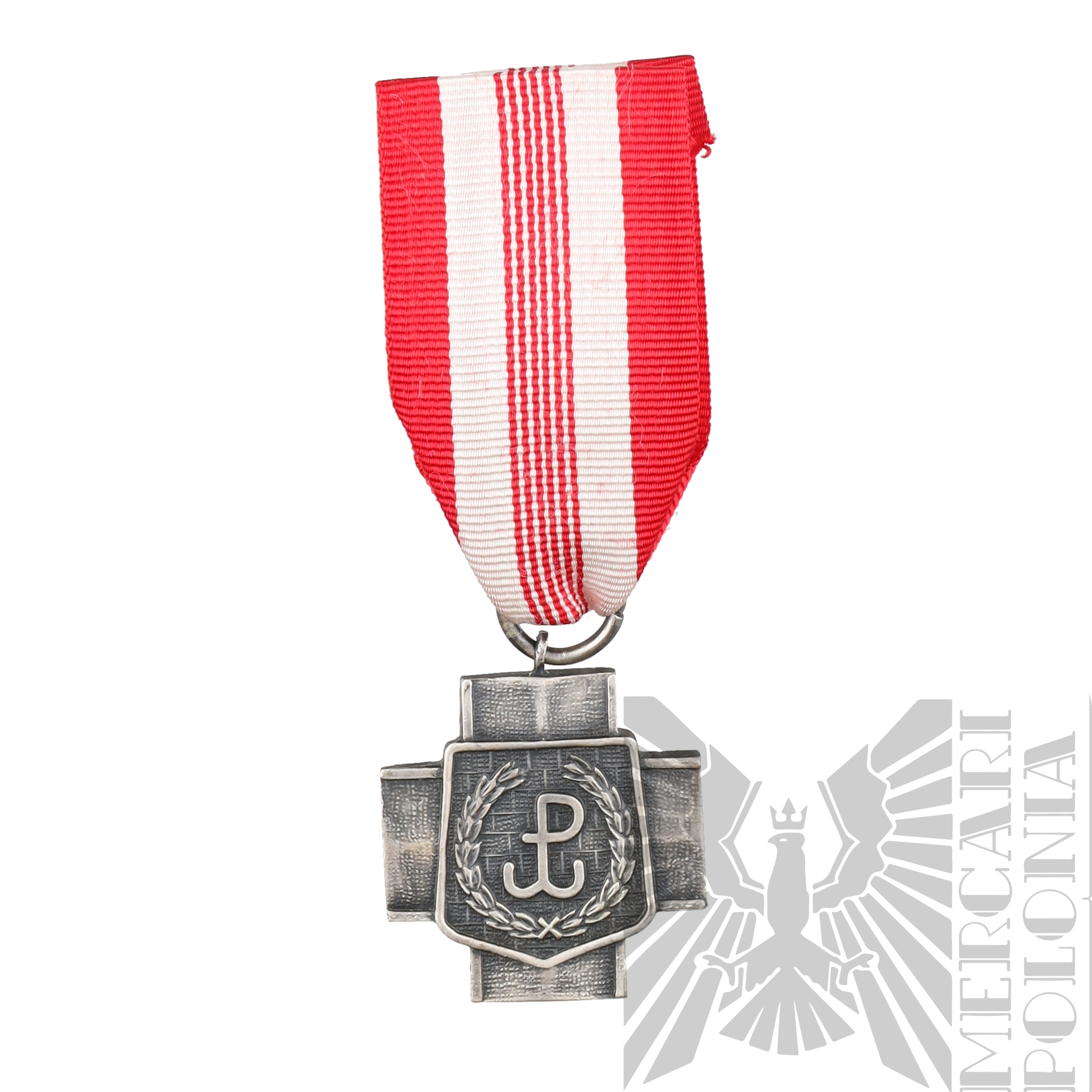 Odznaczenie w formie krzyża, wewnątrz widoczna tarczka z nałożonym wieńcem i symbolem Powstania Warszawskiego PW, na rewersie widoczny napis 1939 Armia Krajowa 1945.