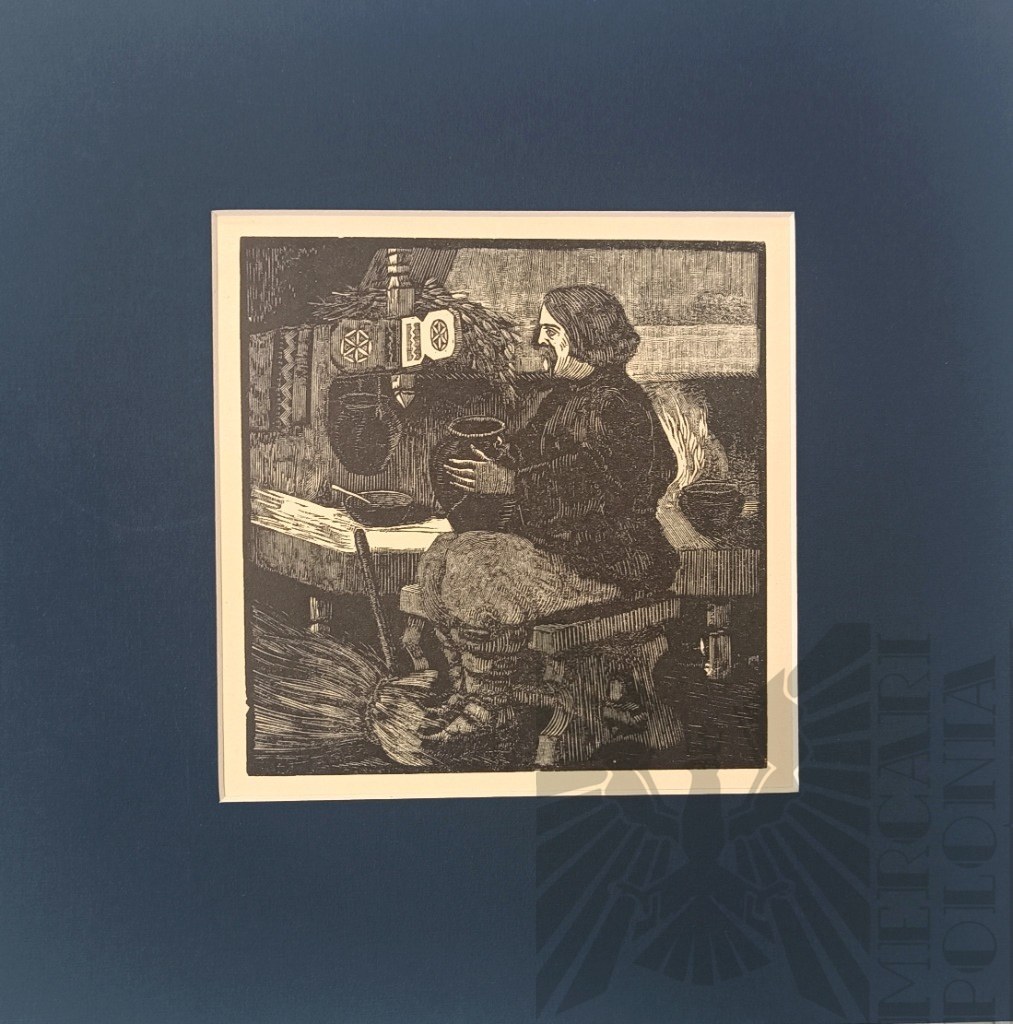 Stanisław JAKUBOWSKI (14.04.1885 Kosów - 9.06.1964 Kraków) grafik i malarz. Początkowo uczył się w Szkole Przemysłu Drzewnego w Stanisławowie (dział rzeźby), a w latach 1907-1912 studiował w ASP w Krakowie u Teodora Axentowicza, Stanisława Dębickiego i Leona Wyczółkowskiego, od 1912 nauczyciel w szkolnictwie średnim, od 1946 wykładowca, potem docent w ASP w Krakowie. Od ok. 1914 zajął się głównie grafiką artystyczną. Mistrz drzeworytu, uprawiał także techniki metalowe, autor ok. tysiąca rycin, nadto płodny grafik użytkowy, znawca ornamentu i tematyki słowiańskiej (zob.: „Słownik artystów polskich …”, t. 3, ss. 185-187). Literatura: Maria Grońska, Grafika w książce, tece i albumie. Polskie wydawnictwa artystyczne i bibliofilskie, Wrocław-Warszawa-Kraków 1994, s. 241, poz. 282.