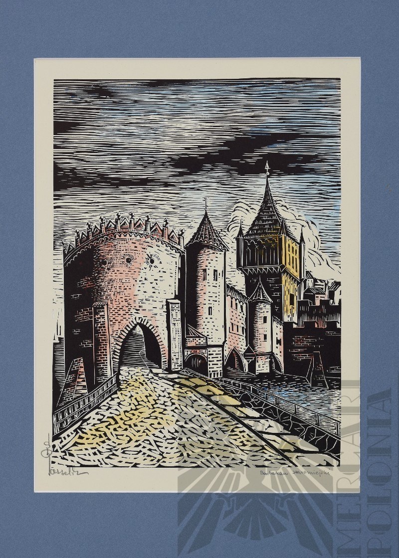 drzeworyt ręcznie kolorowany, akwarelą, papier 31 x 21 cm (w świetle passe – partout), sygn.. ołówkiem przez autora l.d. „Rassalski” oraz opisane ołówkiem p.d.