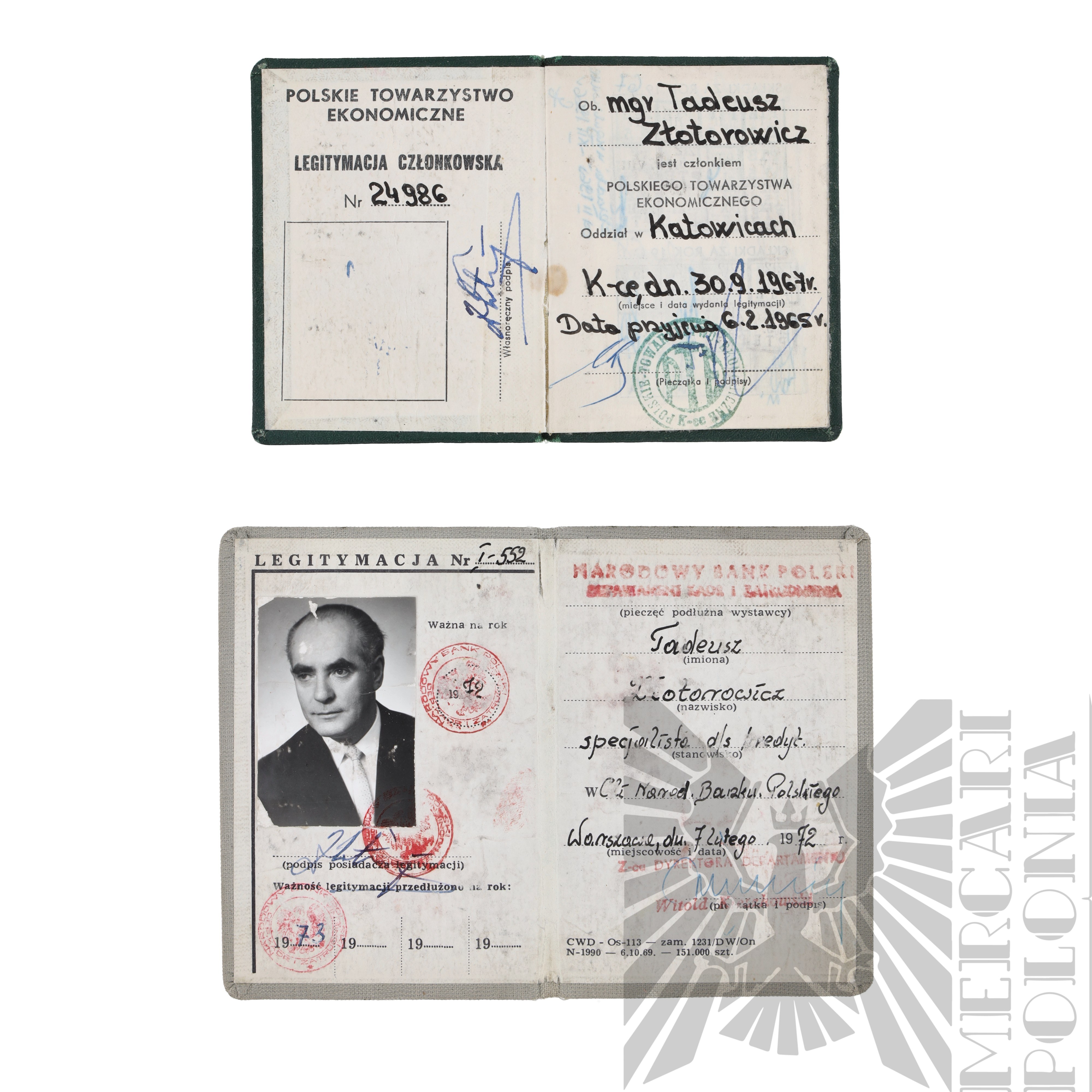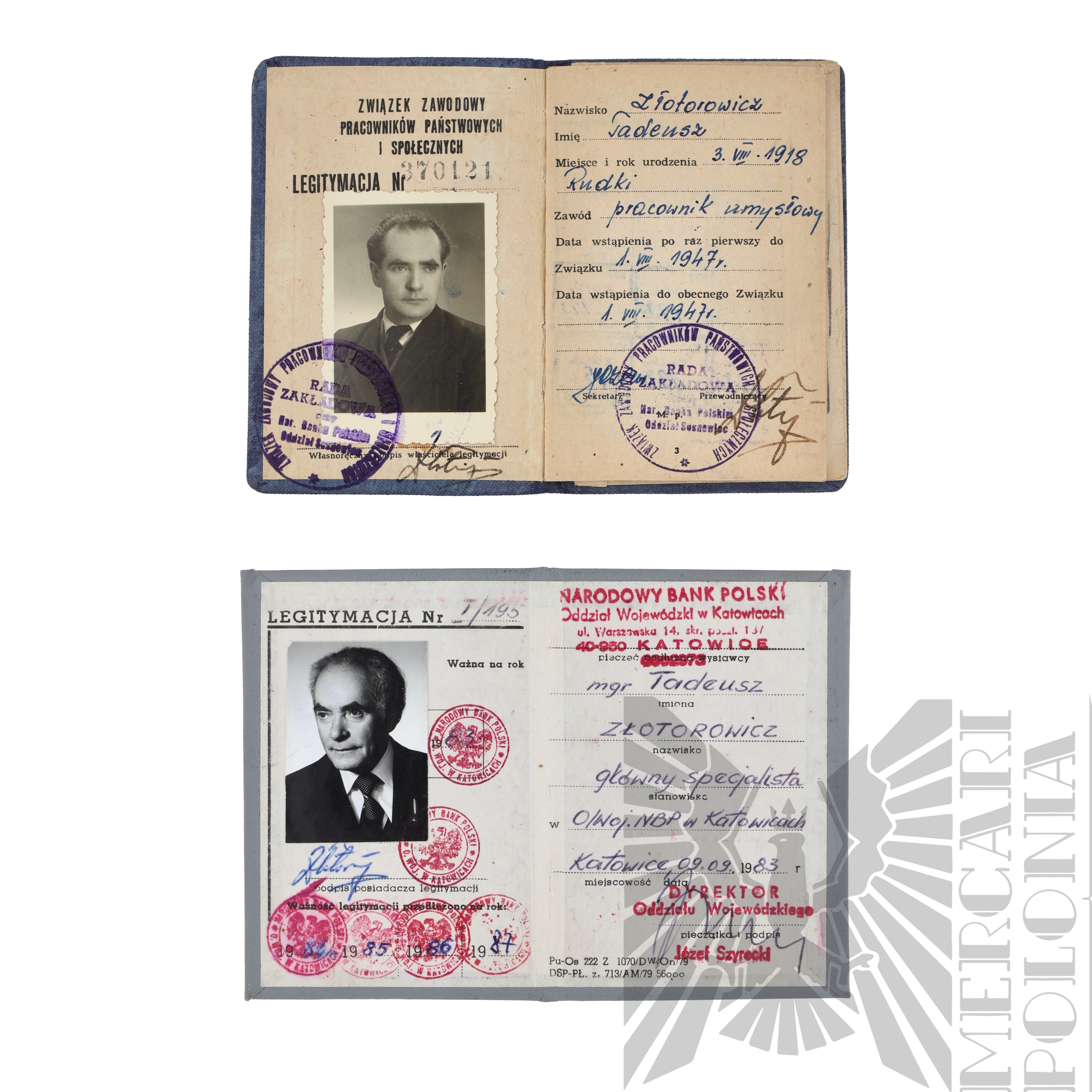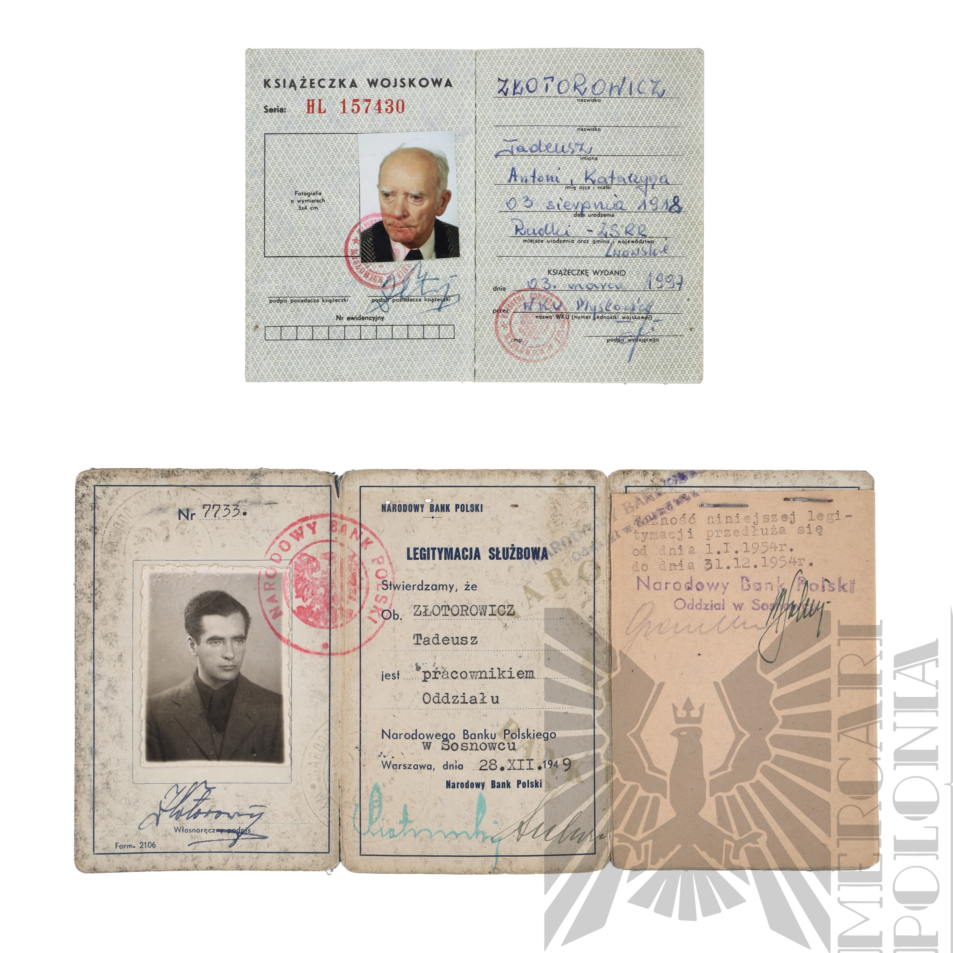 Duży zestaw legitymacji i odznak z okresu Polskiej Rzeczypospolitej Ludowej należących do Tadeusza Złotorowicza, weterana 1 Dywizji Pancernej.