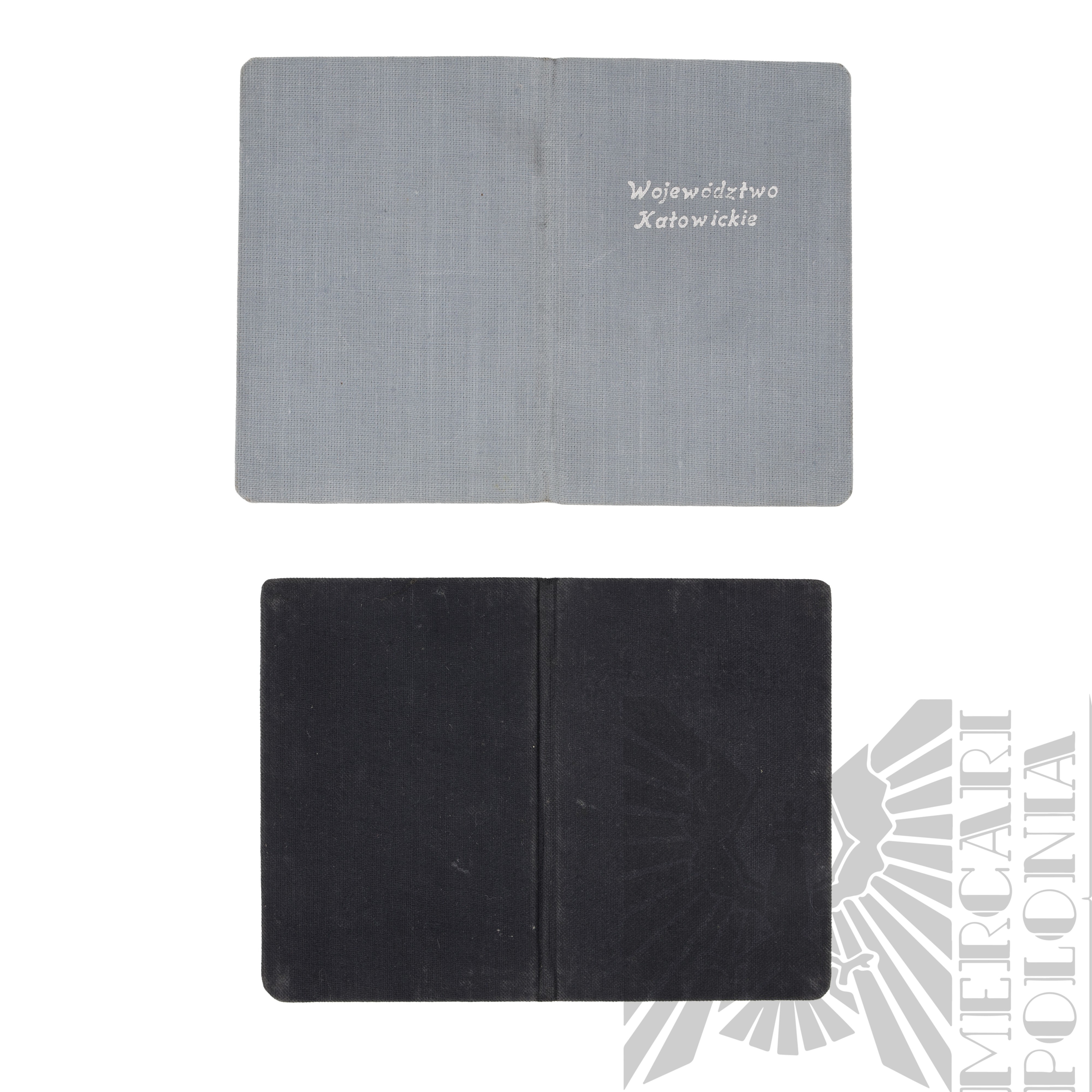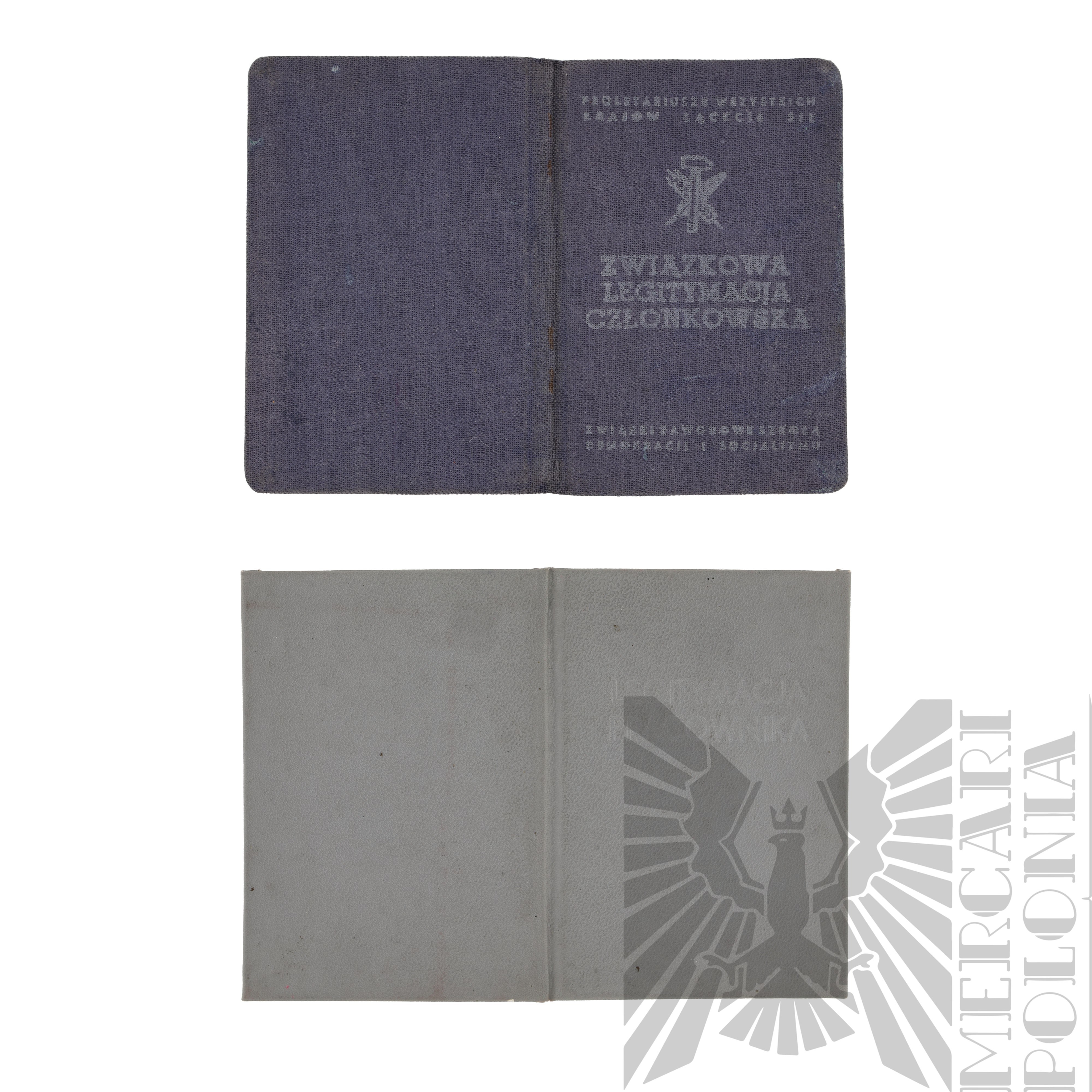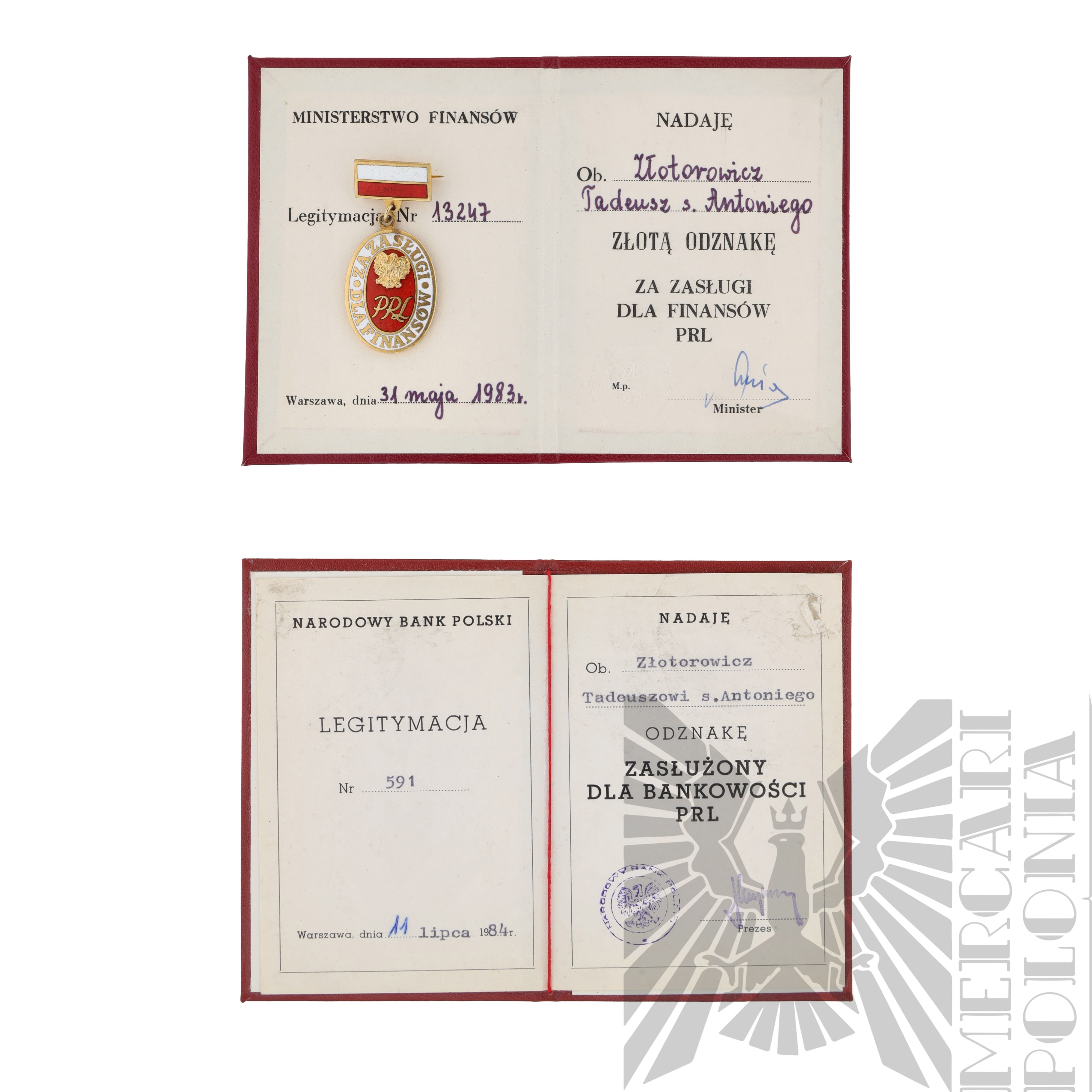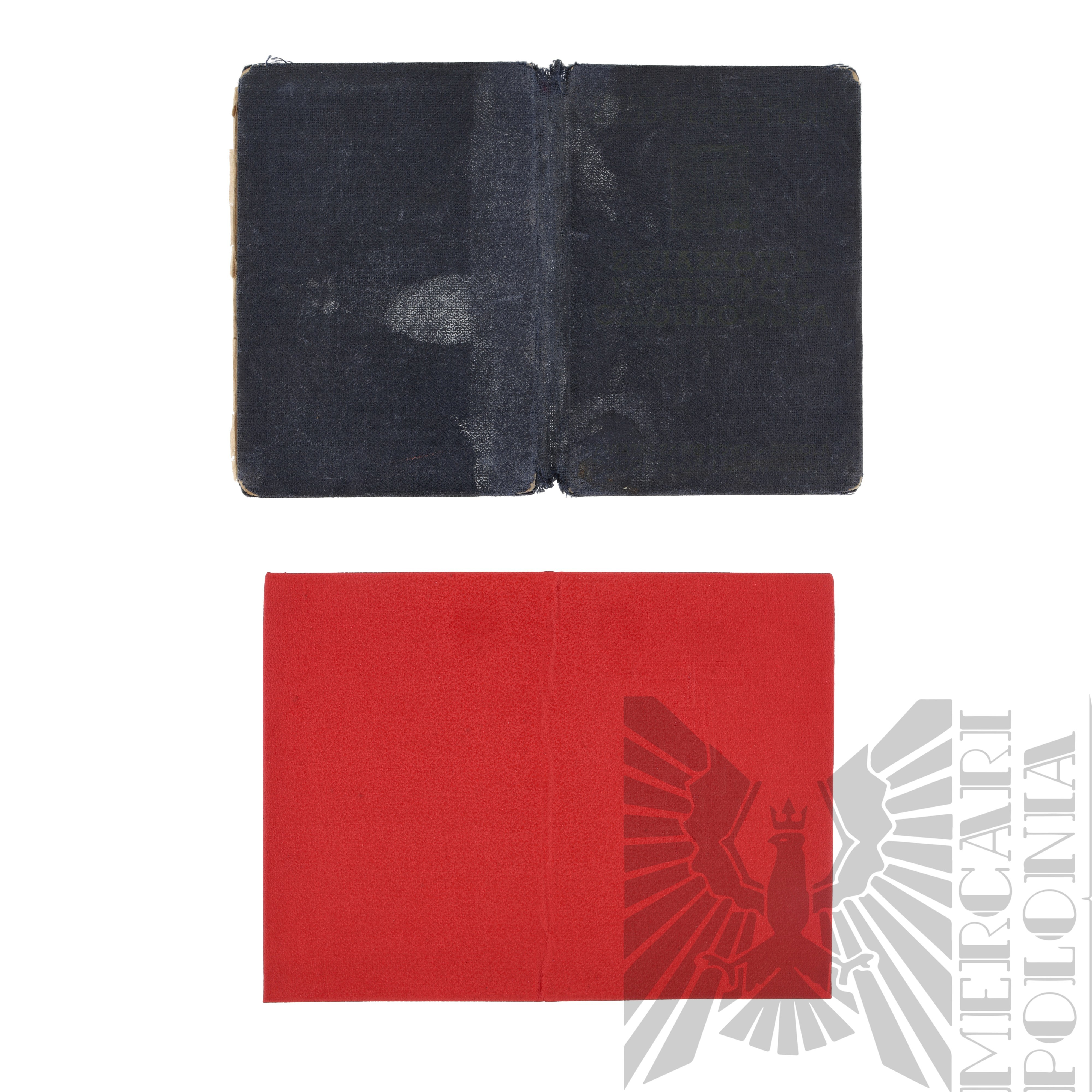 Duży zestaw legitymacji i odznak z okresu Polskiej Rzeczypospolitej Ludowej należących do Tadeusza Złotorowicza, weterana 1 Dywizji Pancernej.