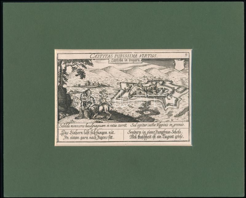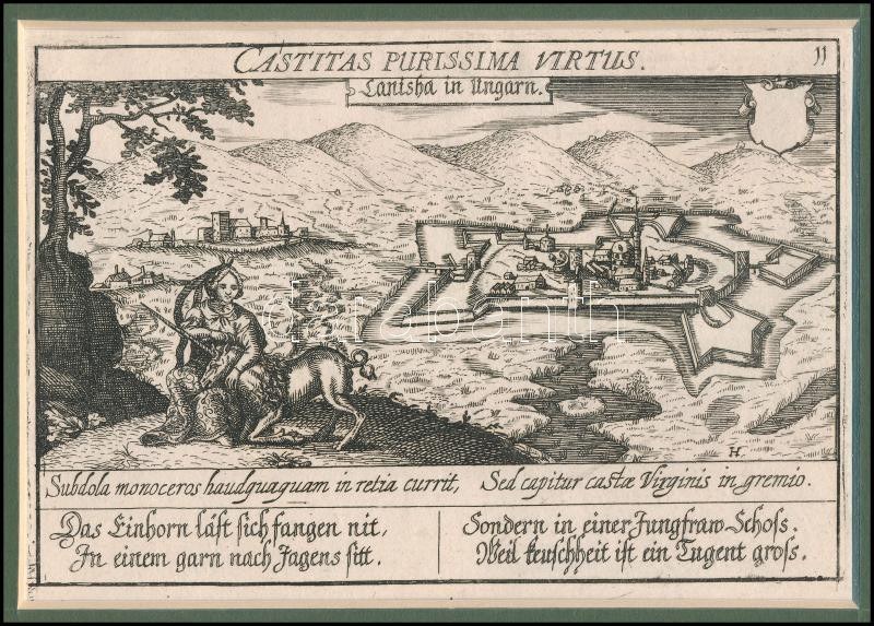 1626 Kanizsa korabeli rézmetszetű látképe Megjelent: D. Meissner: Thesaurus Philo-politicus . Frankfurt am Main-ban 1626-ban Eredetileg a képek csak a szöveghez, díszítő háttérként szolgáltak. A későbbi kiadásokat azonban már a képek miatt jelentették meg. A monumentális munka összesen 830 képet (köztük több magyar várost, várat) tartalmaz. A metszetek egy-egy közmondást ábrázolnak: "Az egyszarvút nem lehet hálóval elkapni vagy levadászni, hanem egy szűz ölében lehet elfogni, mert a szüzesség nagy erény az ifjúságban"