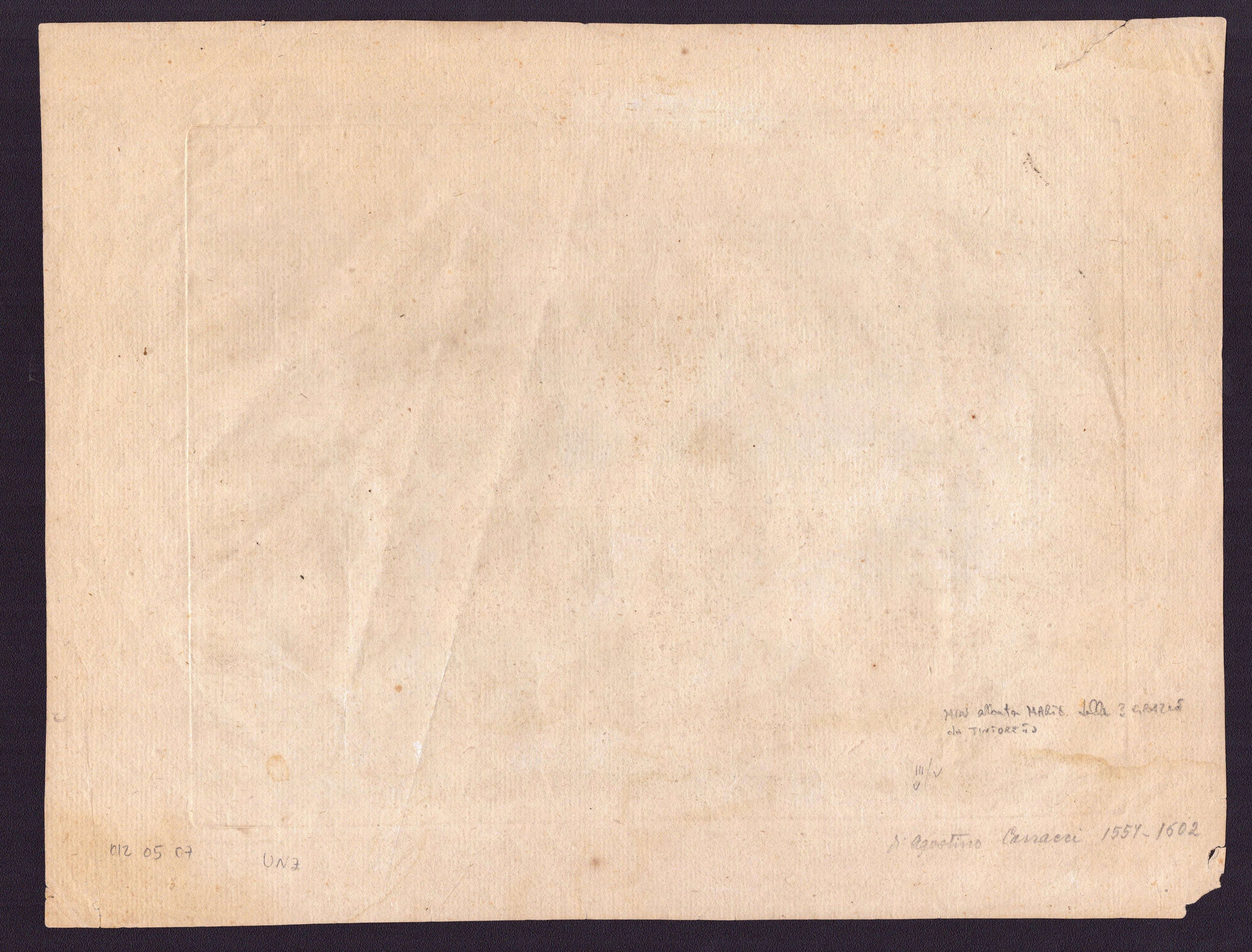 Impression printed on laid paper, with large margins. Paper uniformly browned with some short tears along the edges, but overall in good condition.