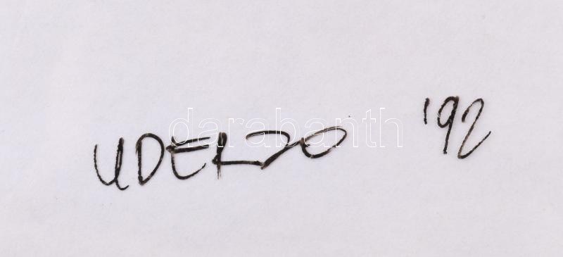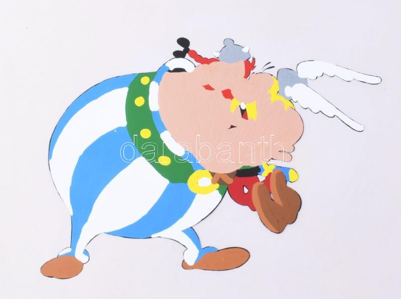 Albert Uderzo (1927-2020): Asterix és Obelix, az Asterix rajzfilm egyik jelenetének eredeti, kézzel rajzolt fázis rajza, 1992. Vegyes technika, műanyag film. Jelzett: Uderzo '92. 28x37 cm / Albert Uderzo (1927-2020): Asterix and Obelix, an original, hand-drawn phase drawing of a scene from the Asterix cartoon, with coloring, 1992. Mixed technique, plastic film. Signed: Uderzo '92. 28x37 cm