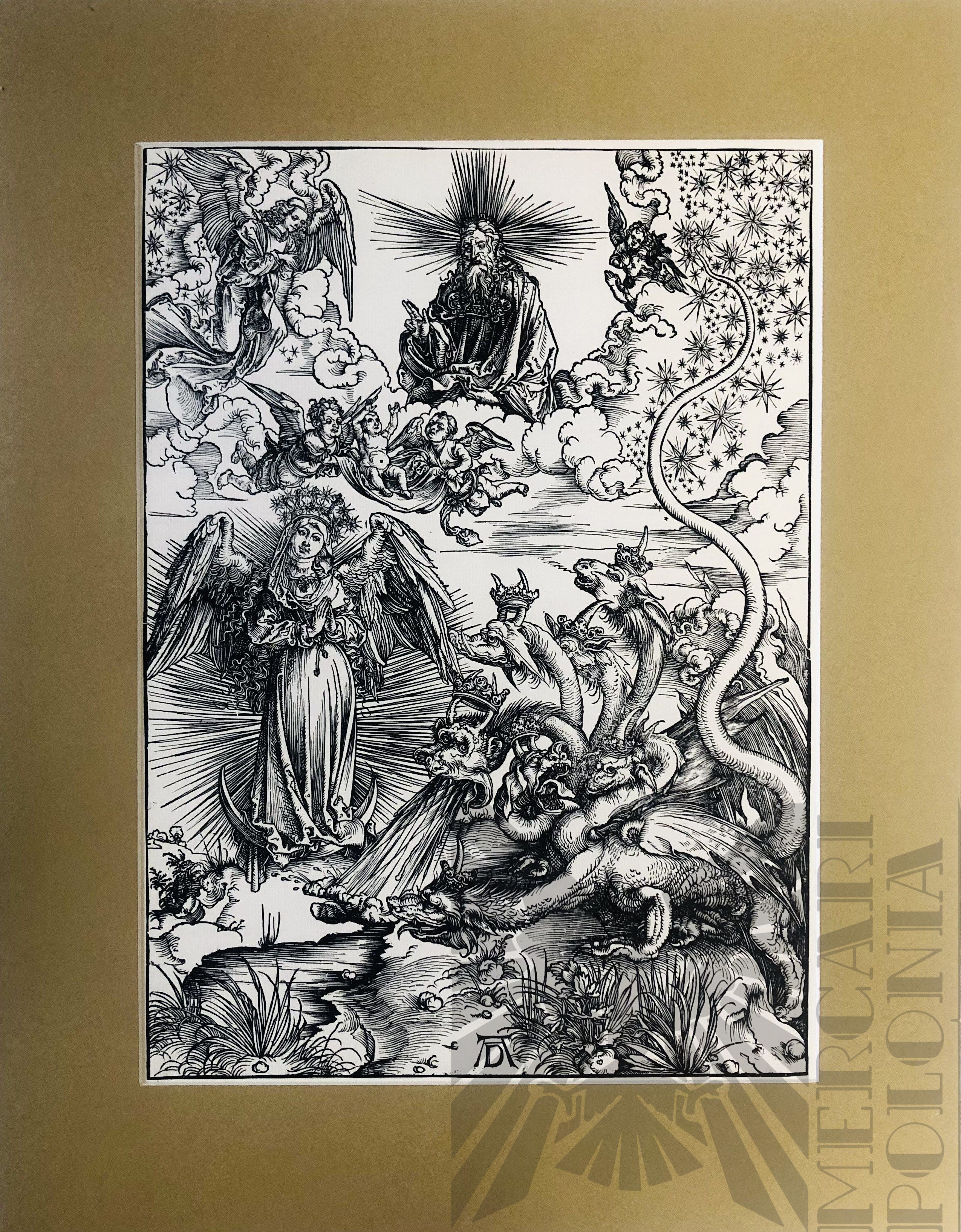 Drzeworyt Albrechta Dürera „Niewiasta i siedmiogłowy smok” („Die Frau und der siebenköpfige Drache”) pochodzi z jego słynnego cyklu „Apokalipsa”, który został wydany w 1498 roku. Cykl ten oparty jest na wizjach z Apokalipsy św. Jana (Księgi Objawienia), jednej z najbardziej symbolicznych ksiąg Nowego Testamentu, która opisuje koniec świata, walkę dobra ze złem oraz ostateczne zwycięstwo Boga nad siłami ciemności.