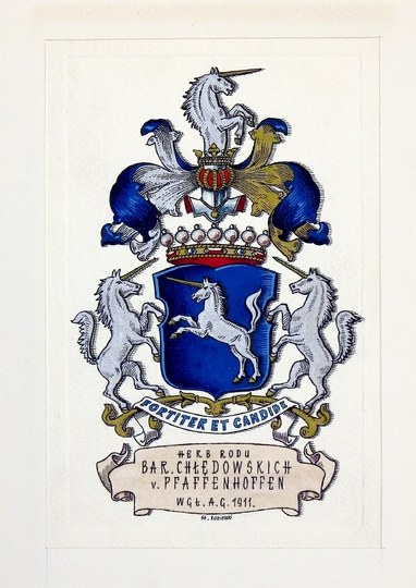 Herb rodu bar. Chłędowskich v. Pfaffenhoffen w Gł. A. G. 1911.