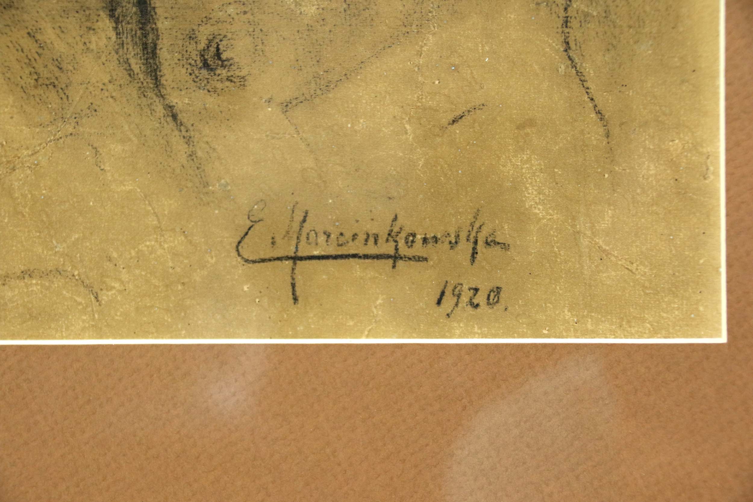 Kredka/papier, sygn. i dat. p.d.: E. Marcinkowska 1920. Wym. 39 x 34 cm, rama 60 x 50 cm.