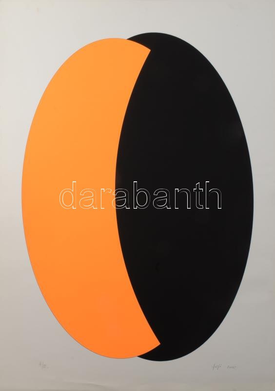 Fajó János (1937-2018): Ellipszis neon-narancs, 2005. Szitanyomat, papír, jelzett, művészpéldány A/E. jelzéssel. Lap alján vágásnyommal és törésnyommal. Lapméret: 70x50 cm