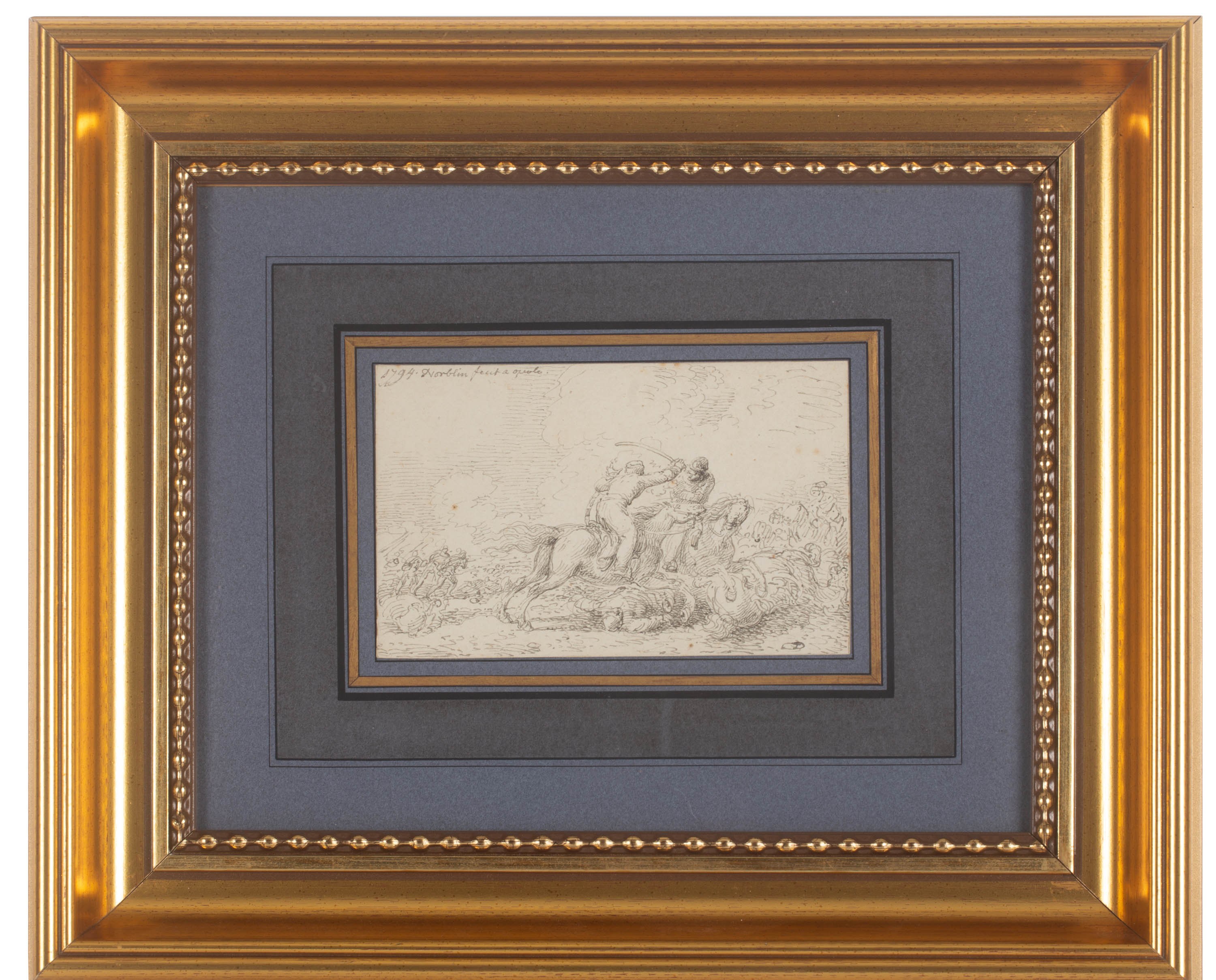 rysunek tuszem, papier, 10,5 × 16 cm w świetle passe-partout