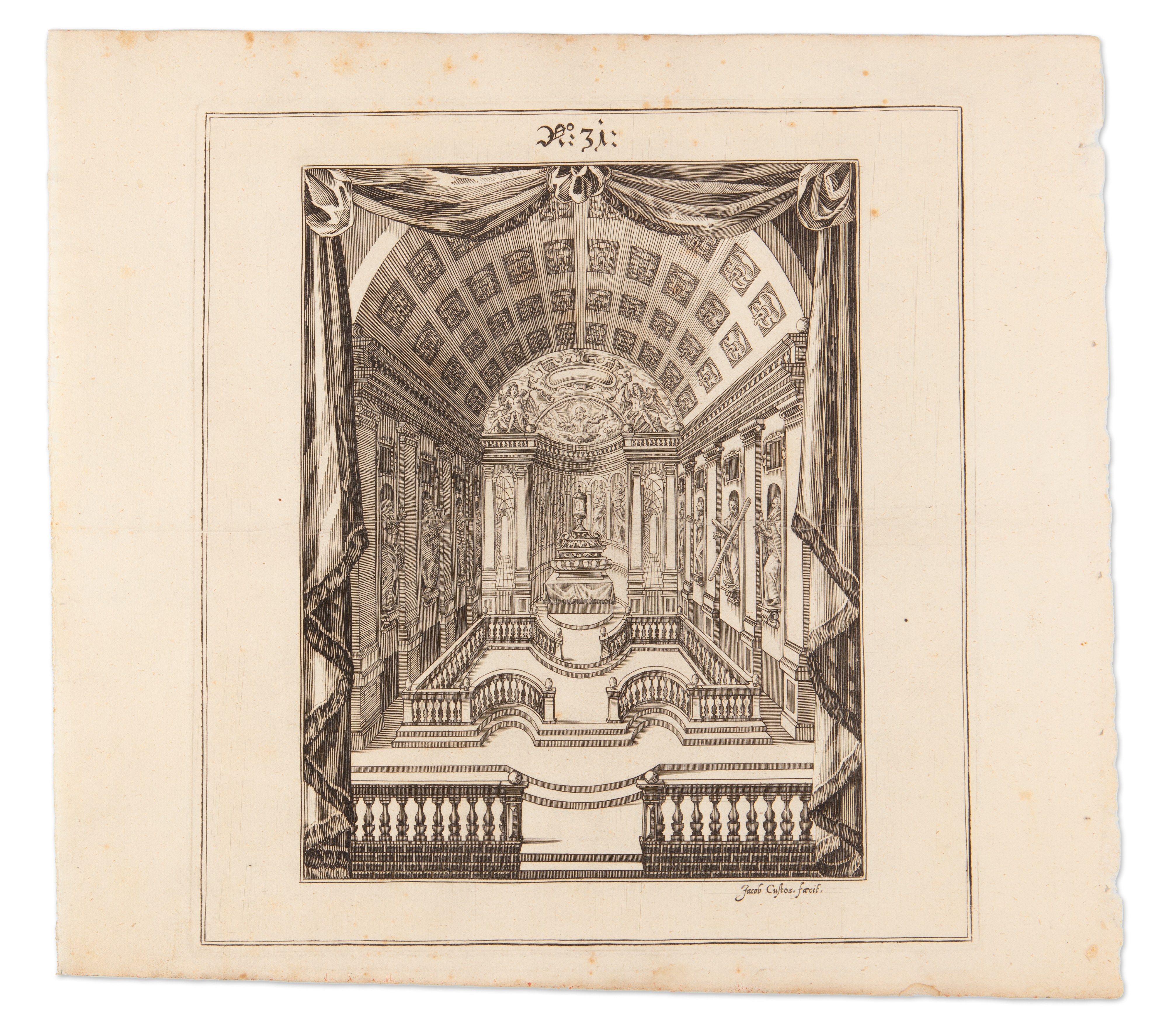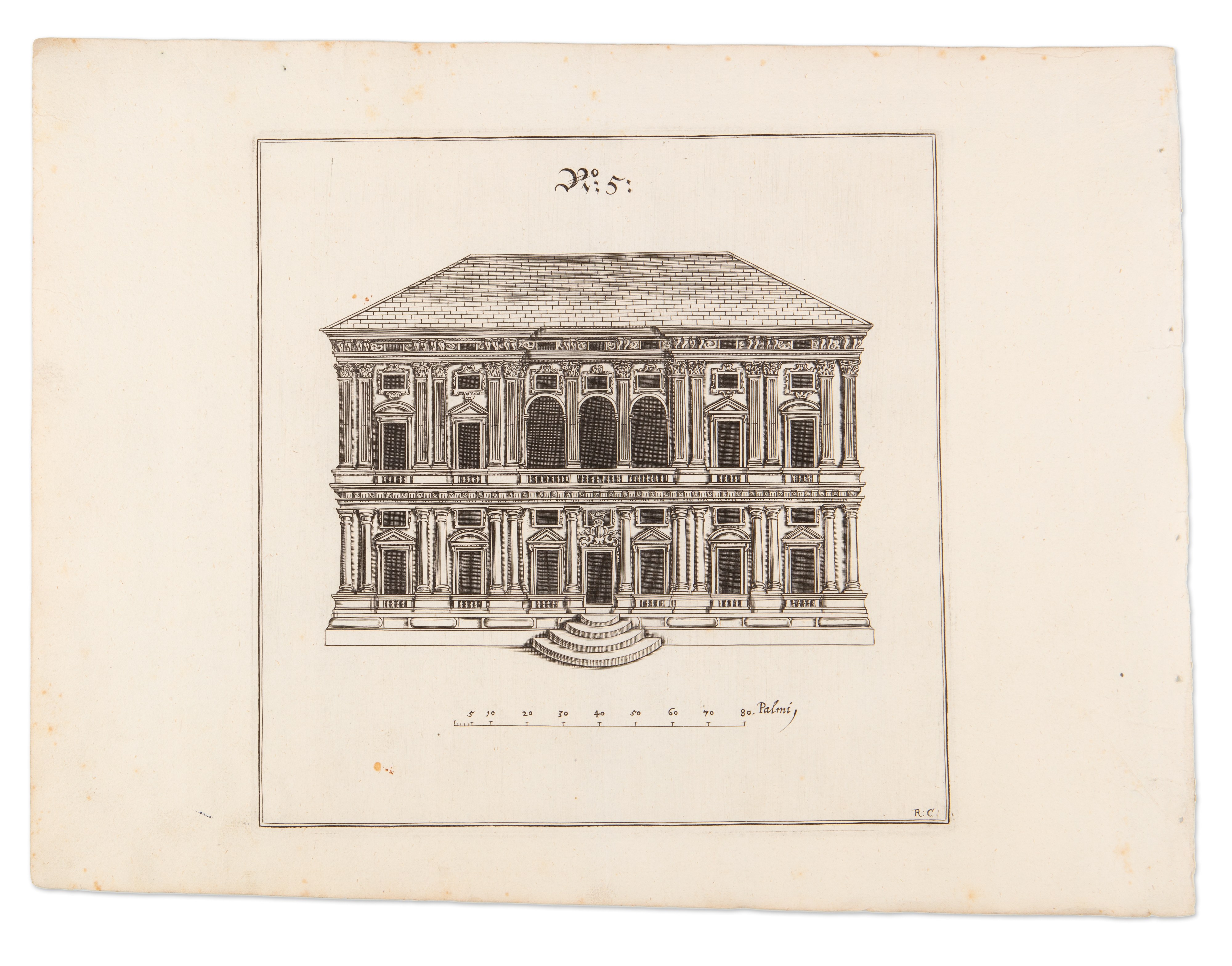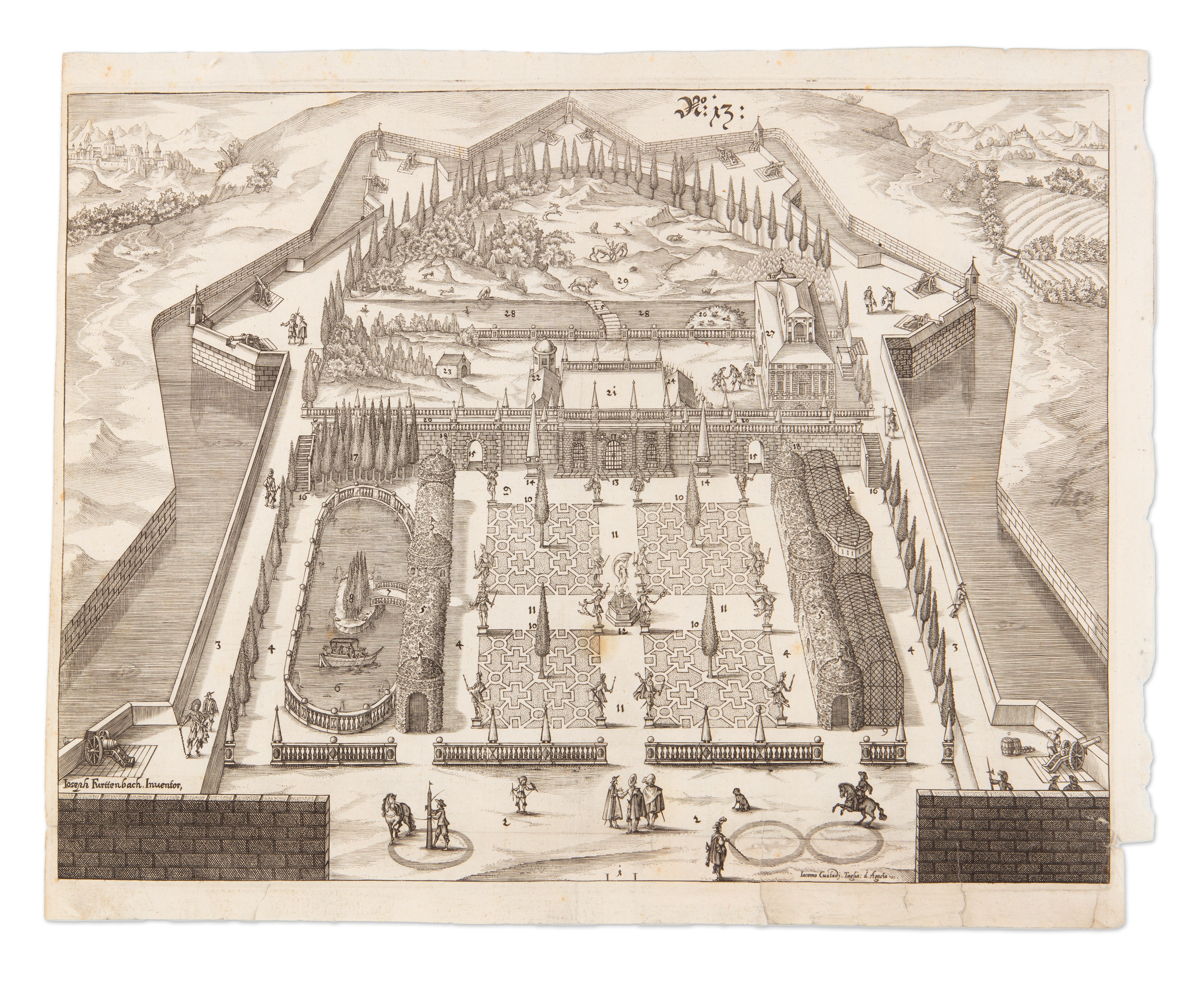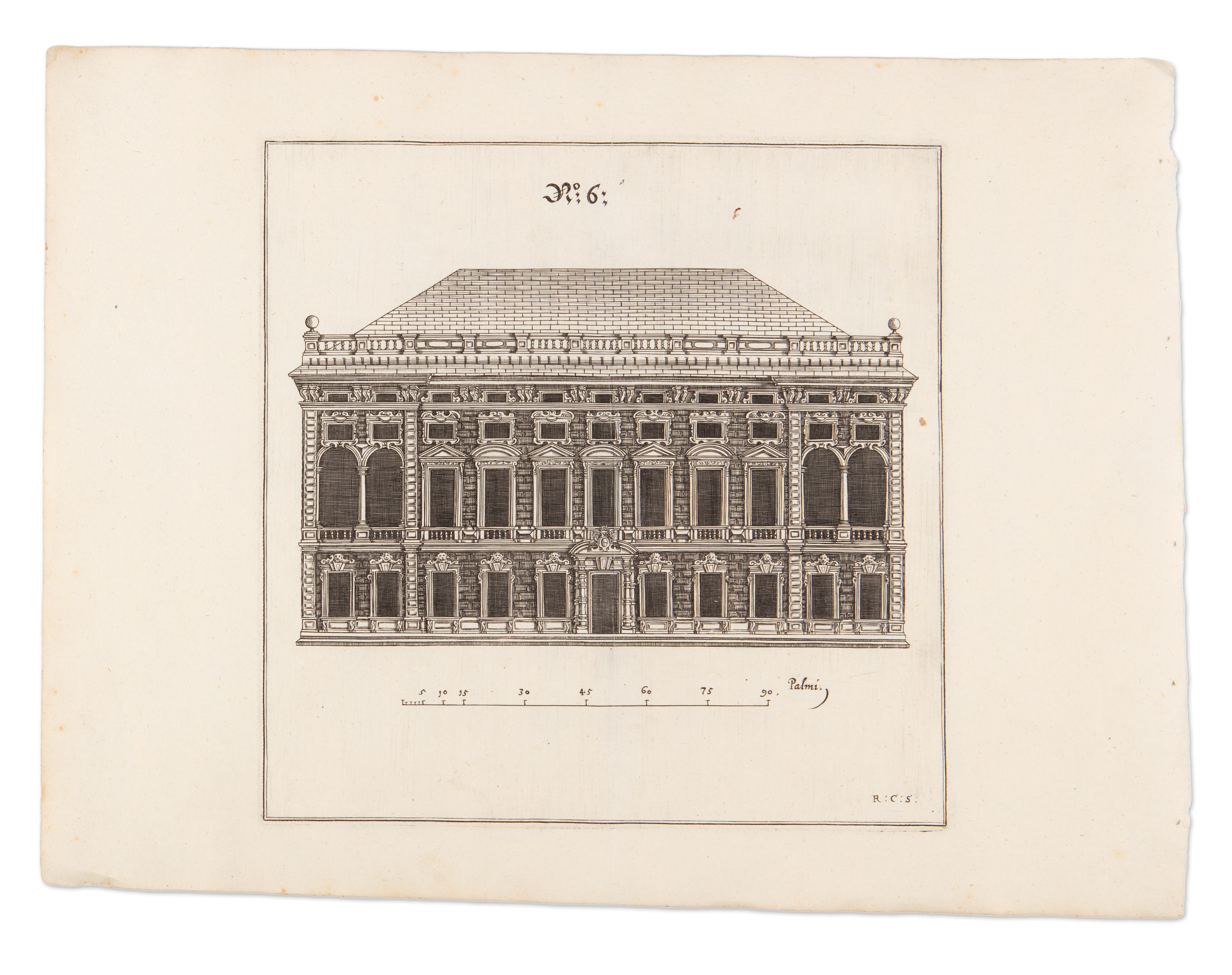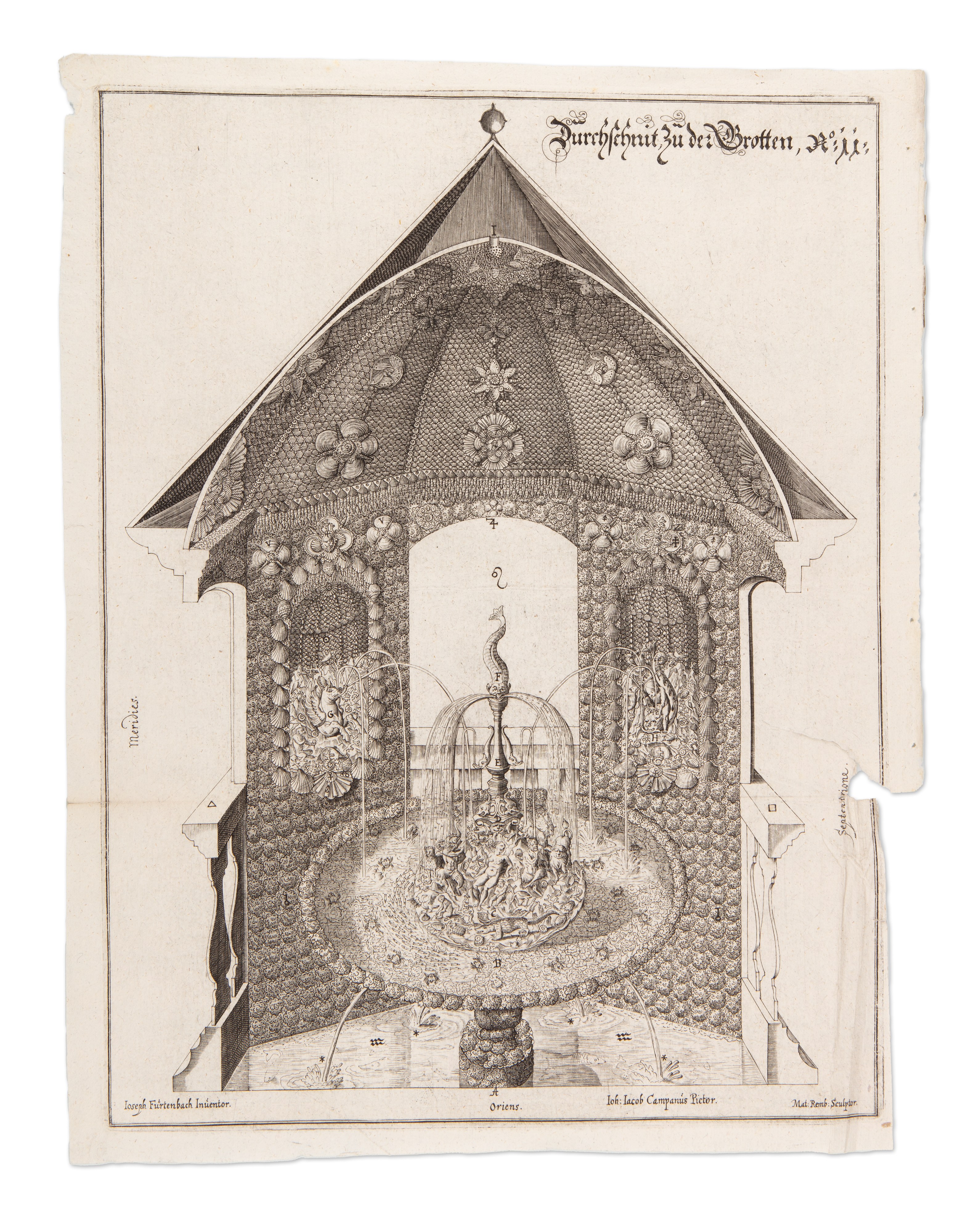 A collection containing approximately 70 technical drawings and floor plans, as well as 24 illustrations from key works by the architect, engineer and designer Joseph Furttenbach the Elder (1591-1667), author of important early Baroque treatises on architecture: Architectura civilis (1628), Architectura martialis (1630), Architectura recreationis (1640) and Architectura privata (1641).