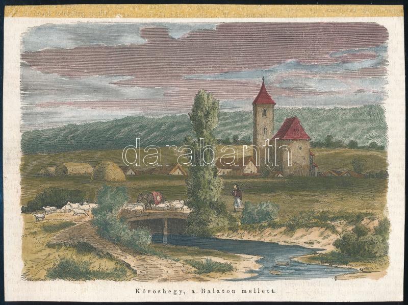 Kőröshegy a Balaton mellett. fametszetű látkép. Megjelent : 1863-ban a Vasárnapi újságban. Mérete 19 x 15 cm, Jó állapotú.