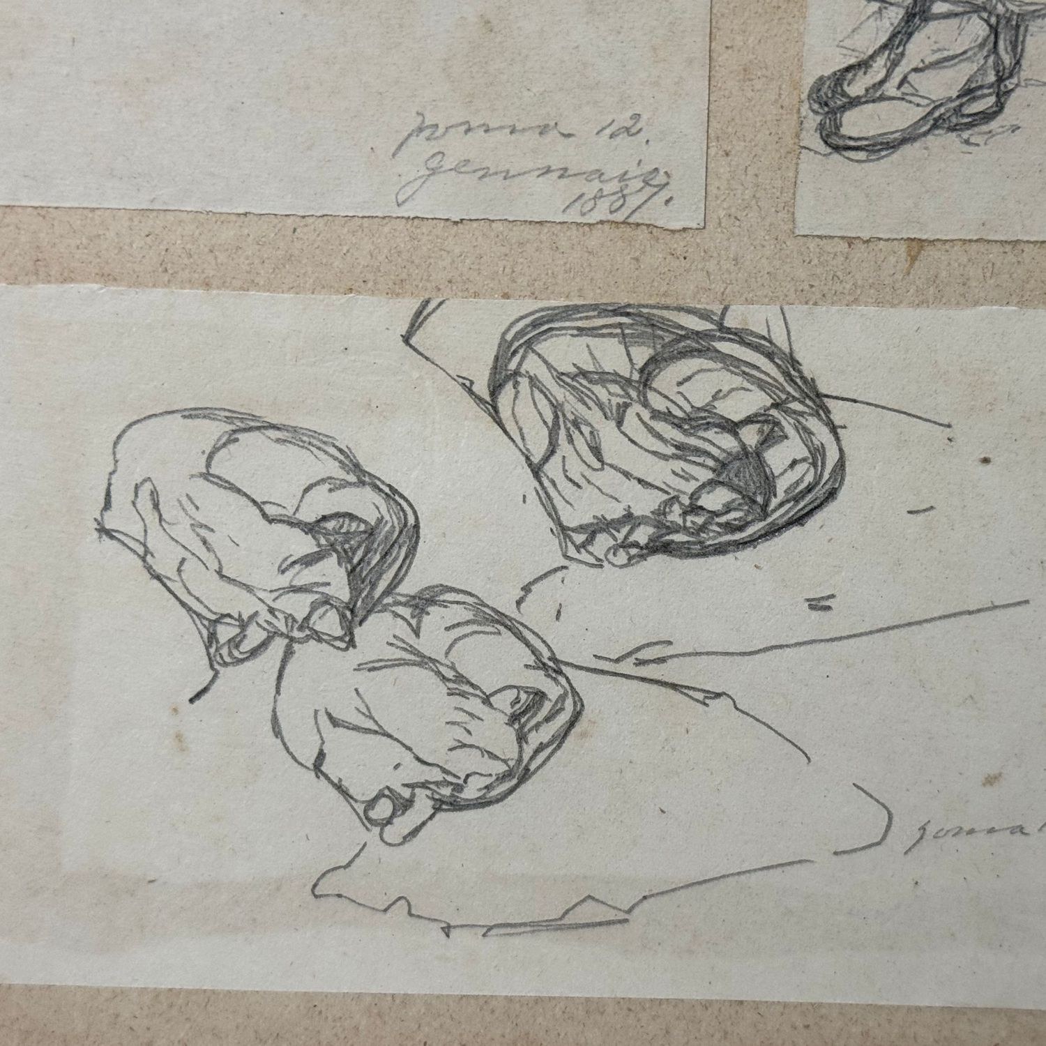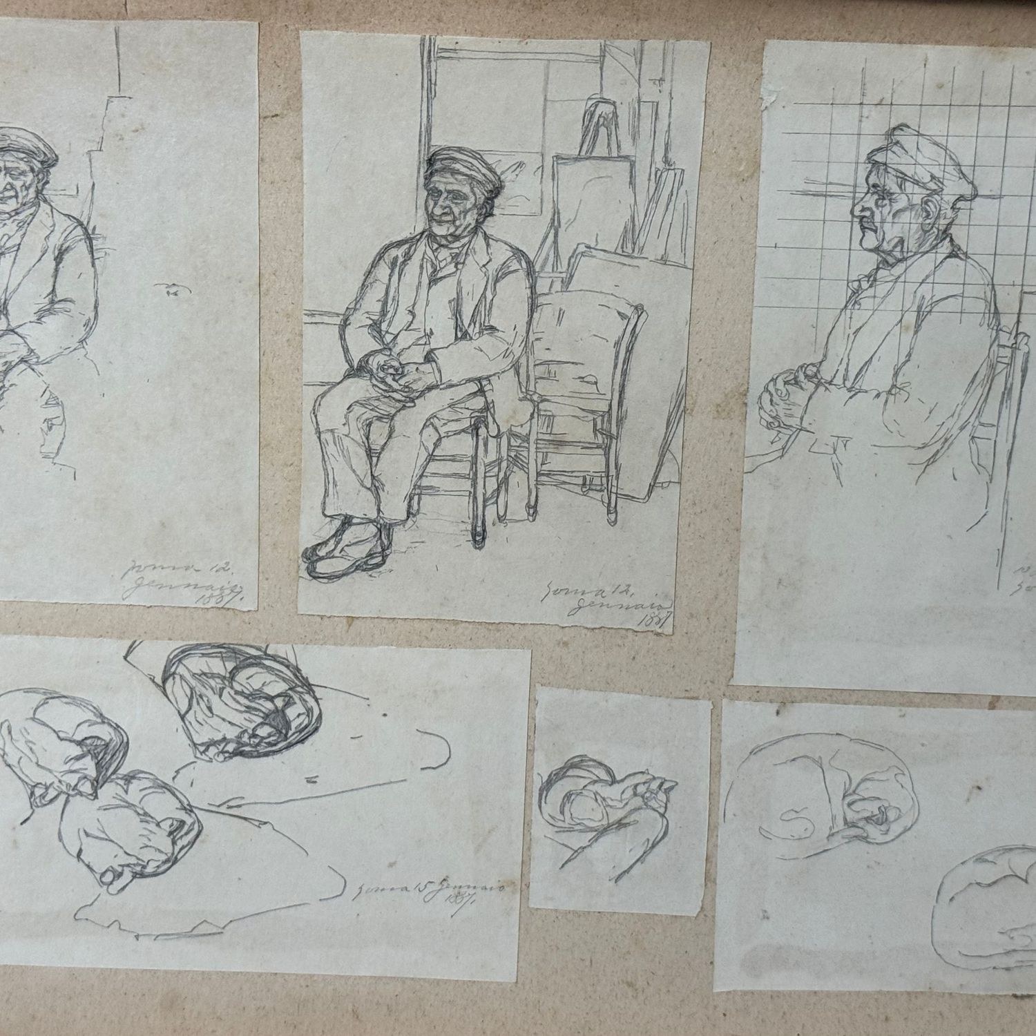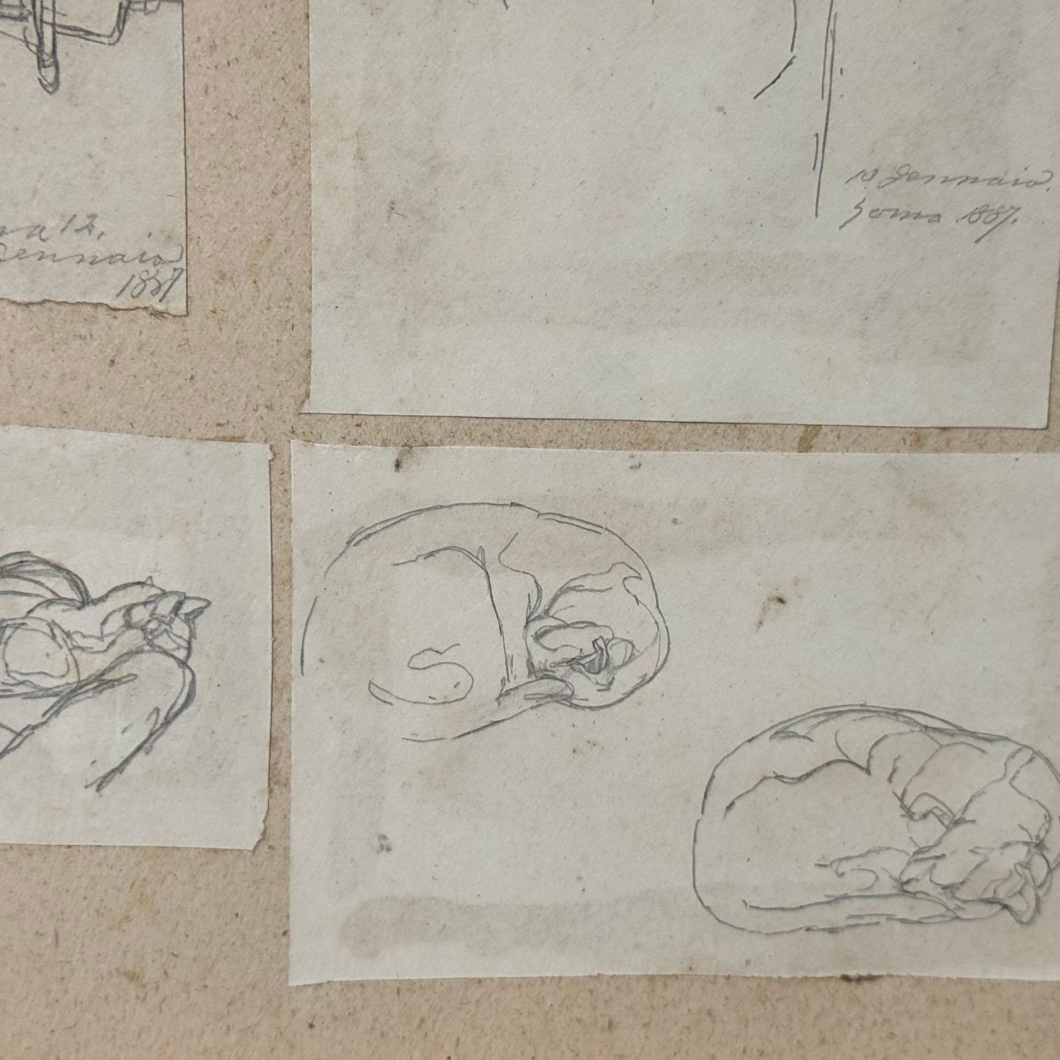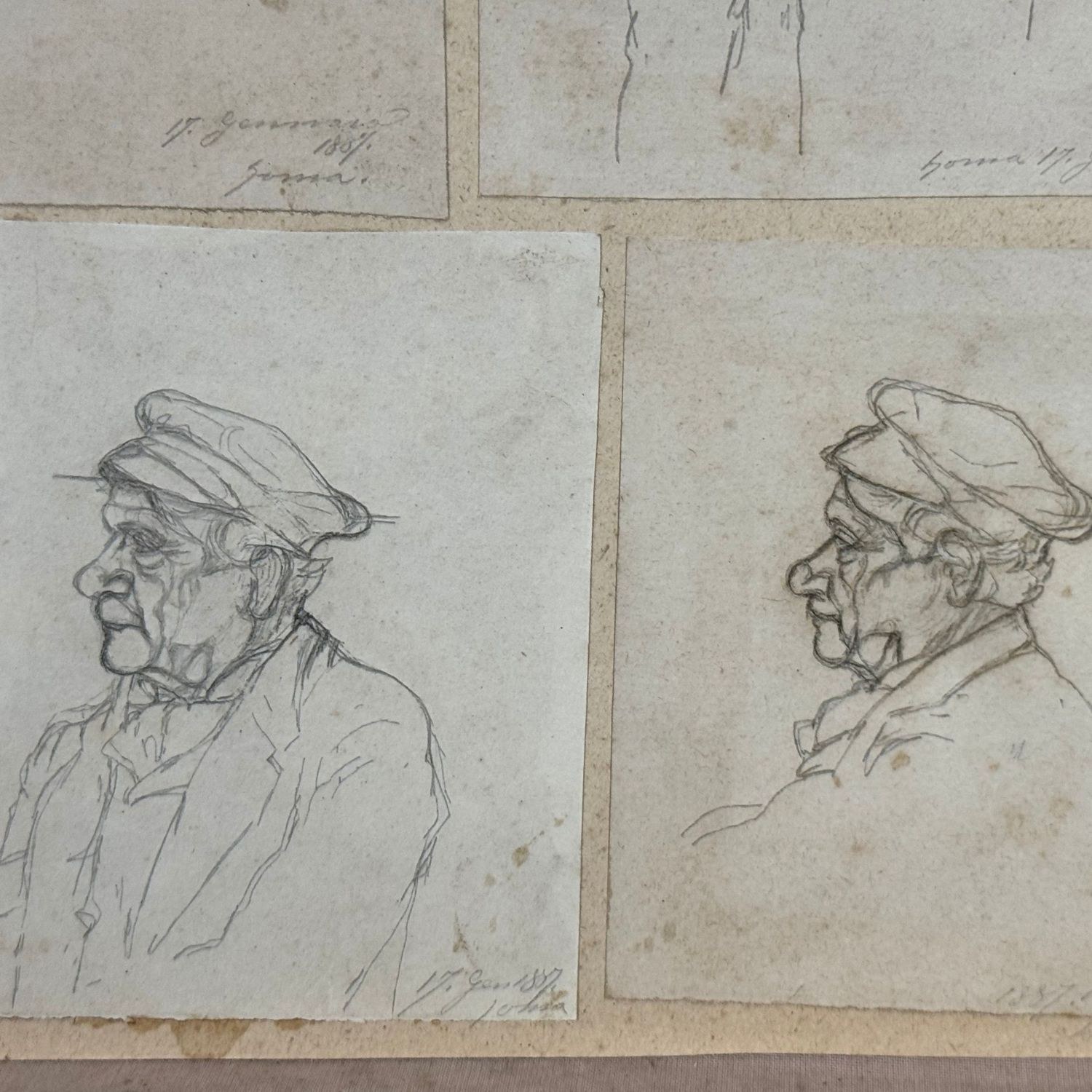Lot of 16 drawings on paper, 19th century, Italian school, featuring various subjects grouped on three sheets.
