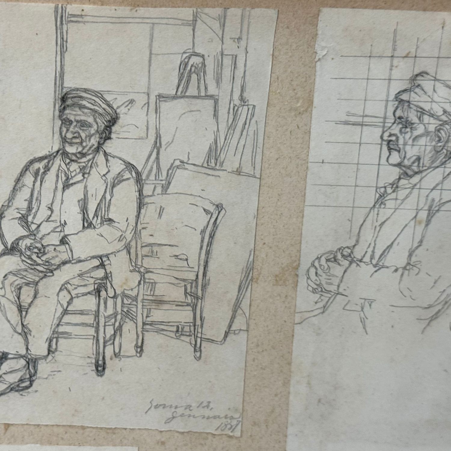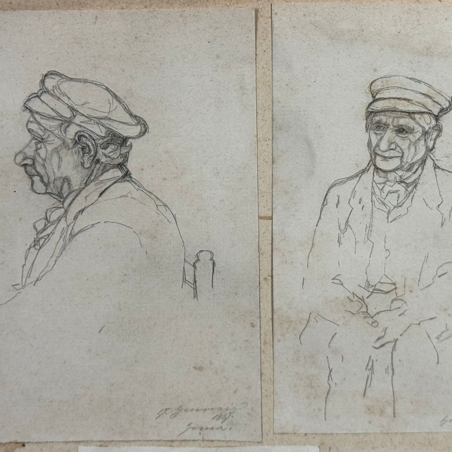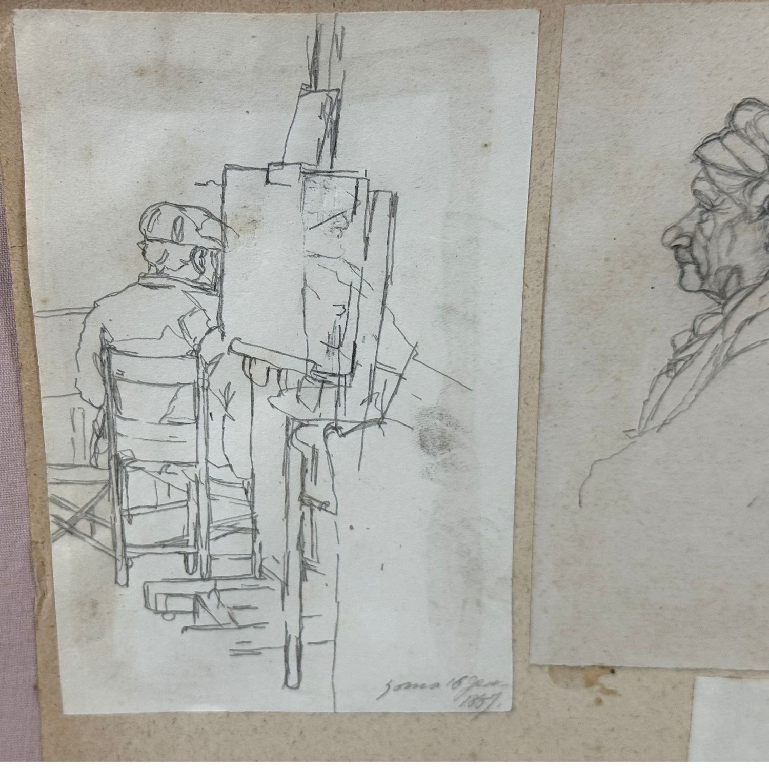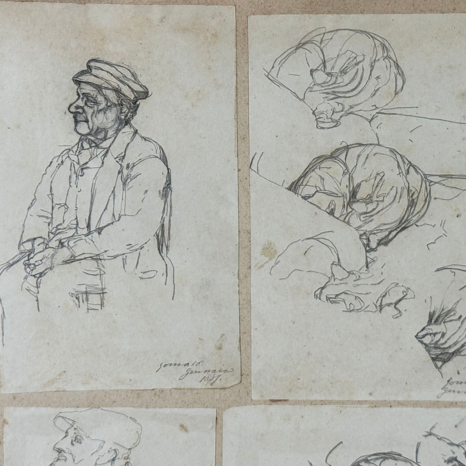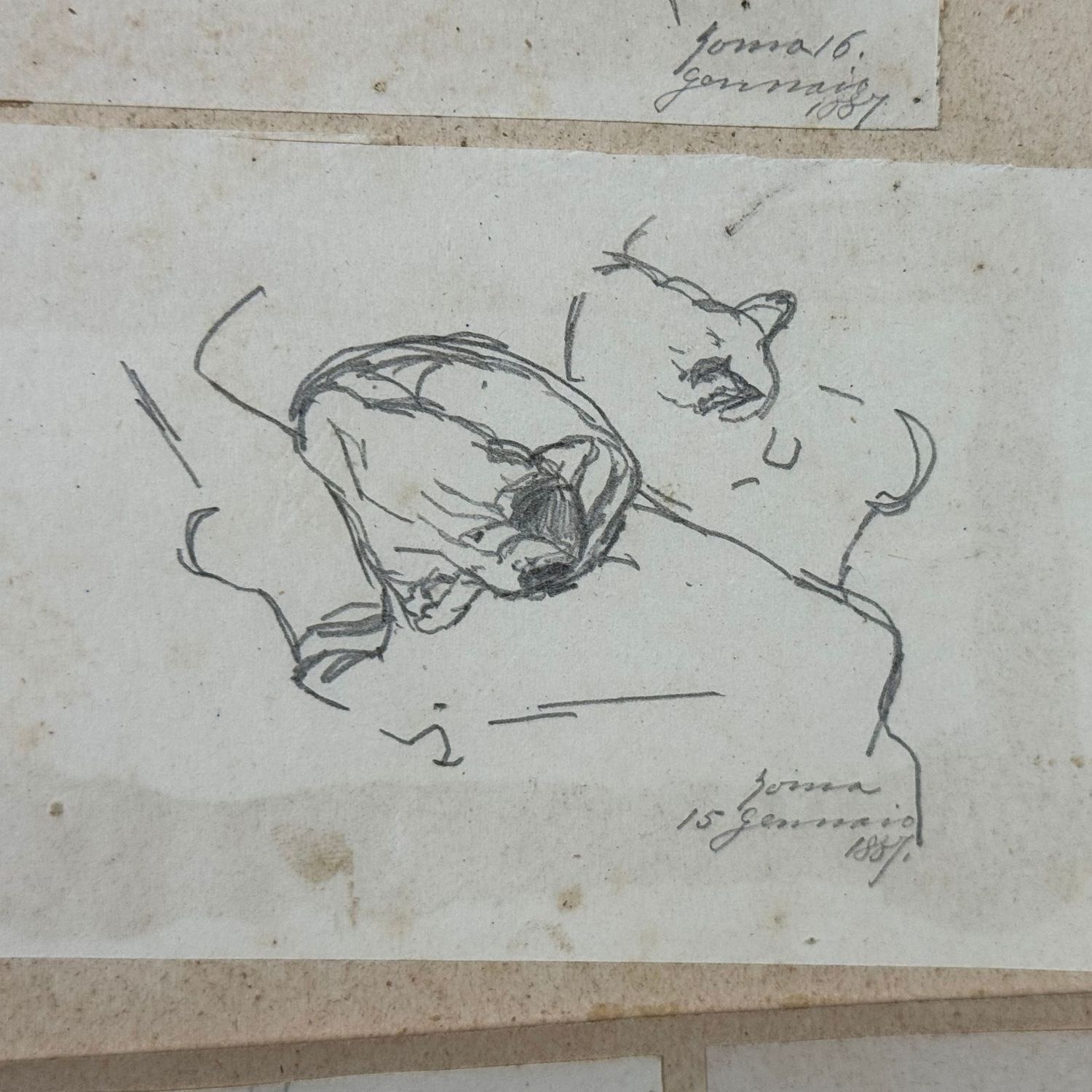 Lot of 16 drawings on paper, 19th century, Italian school, featuring various subjects grouped on three sheets.