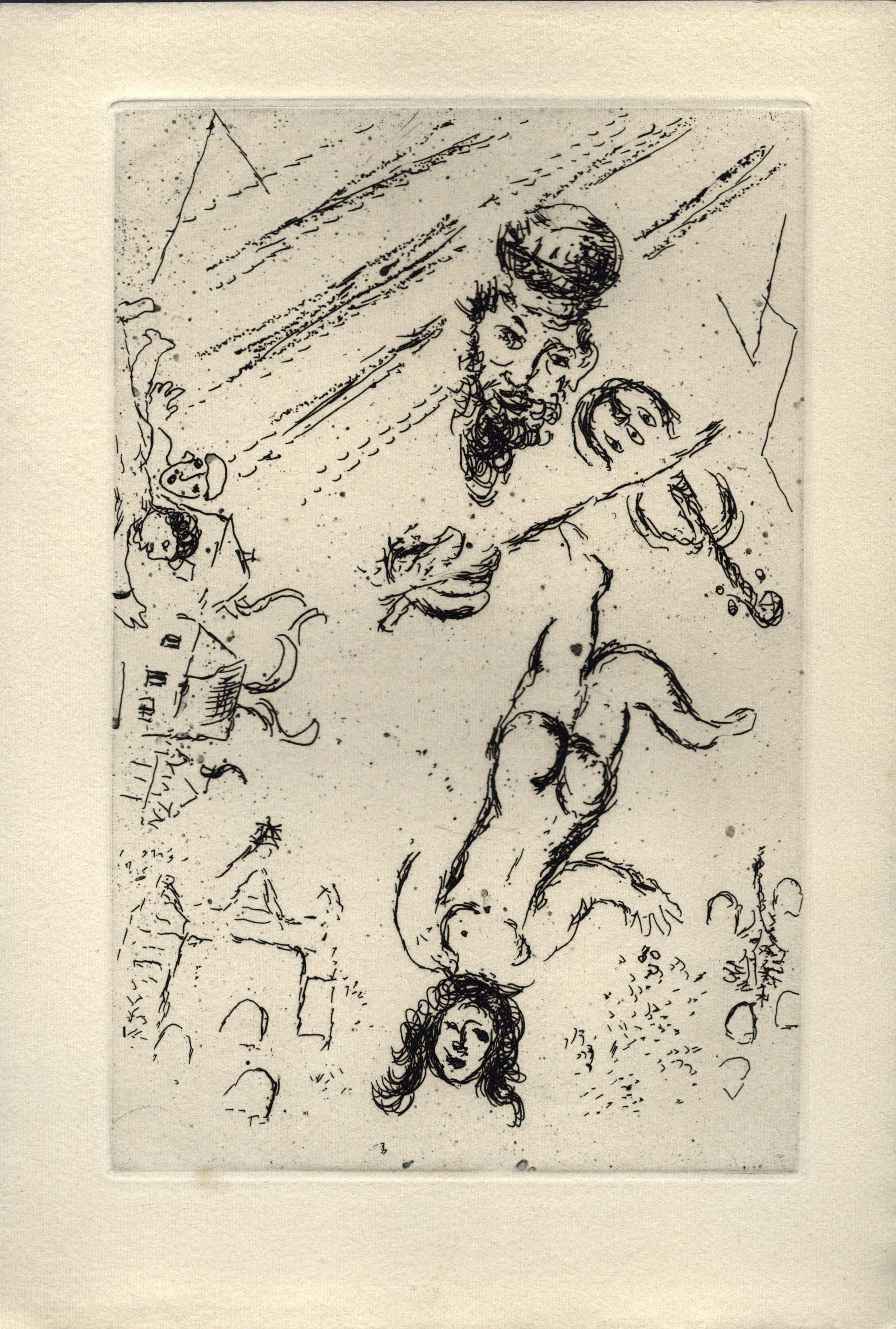 Grafika pochodzi z poematu Jerzego Ficowskiego p.t. "Lettre à Marc Chagall", wydanego w Paryżu w 1969 roku przez luksusowe wydawnictwo Maeght. Poemat "List do Marca Chagalla" powstał pierwotnie w latach 1956-56, pierwsza edycja miała miejsce w roku 1957. Z wspomnianym wydawnictwem z 1969 roku, które zilustrował sam M. Chagall wiąże się niezwyklła historia, bowiem artysta sam zdecydował, że zilustruje dzieło Ficowskiego, po tym jak usłyszął wykonanie poematu z muzyką Stanisława Wiechowicza.
