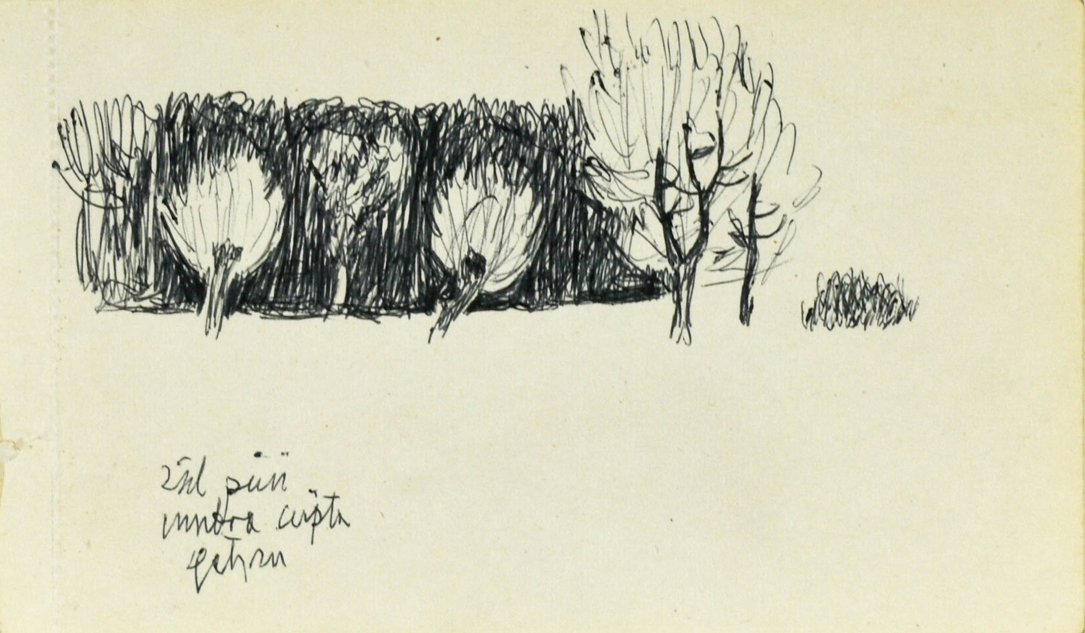 opisany l. d.: ziel … / umbra ciepła / gałęzie (długopis, t. cz.).