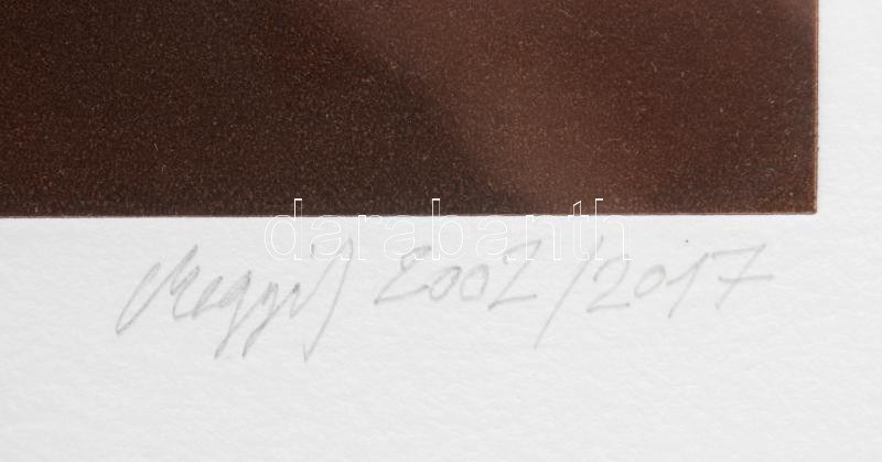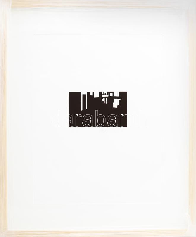 Megyik János (1938-): Város, 2002/2017. Dombornyomás, akril, papír, jelzett. L 1/1 számozással. 10x16,5 cm...