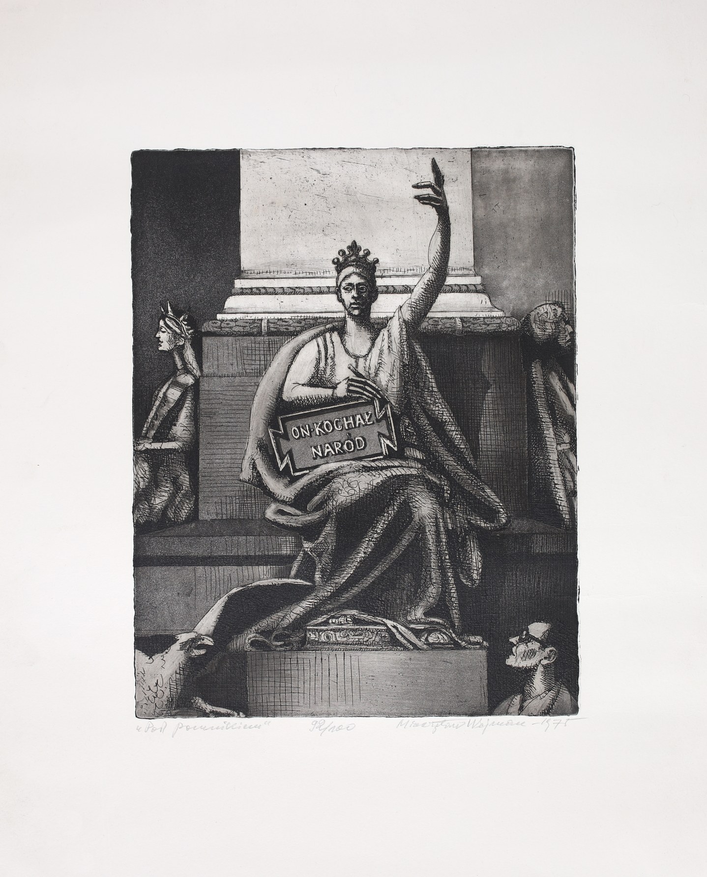 Akwaforta, papier; wym. odb.: 325 x 250 mm; sygn. oł. p. d.: Mieczysław Wejman - 1975; oł. l. d.; "Pod pomnikiem"; egz. 92/100