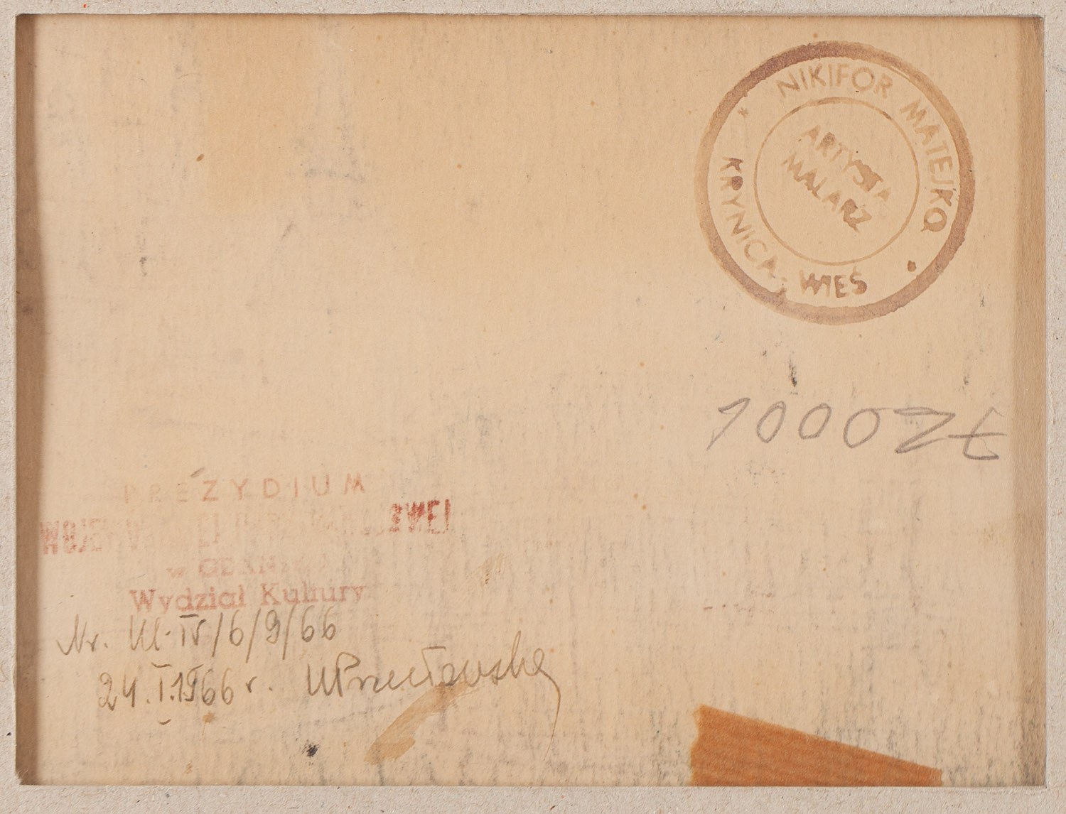 na odwrociu autorska pieczęć: 'NIKIFOR MATEJKO | ARTYSTA MALARZ | KRYNICA WIEŚ'