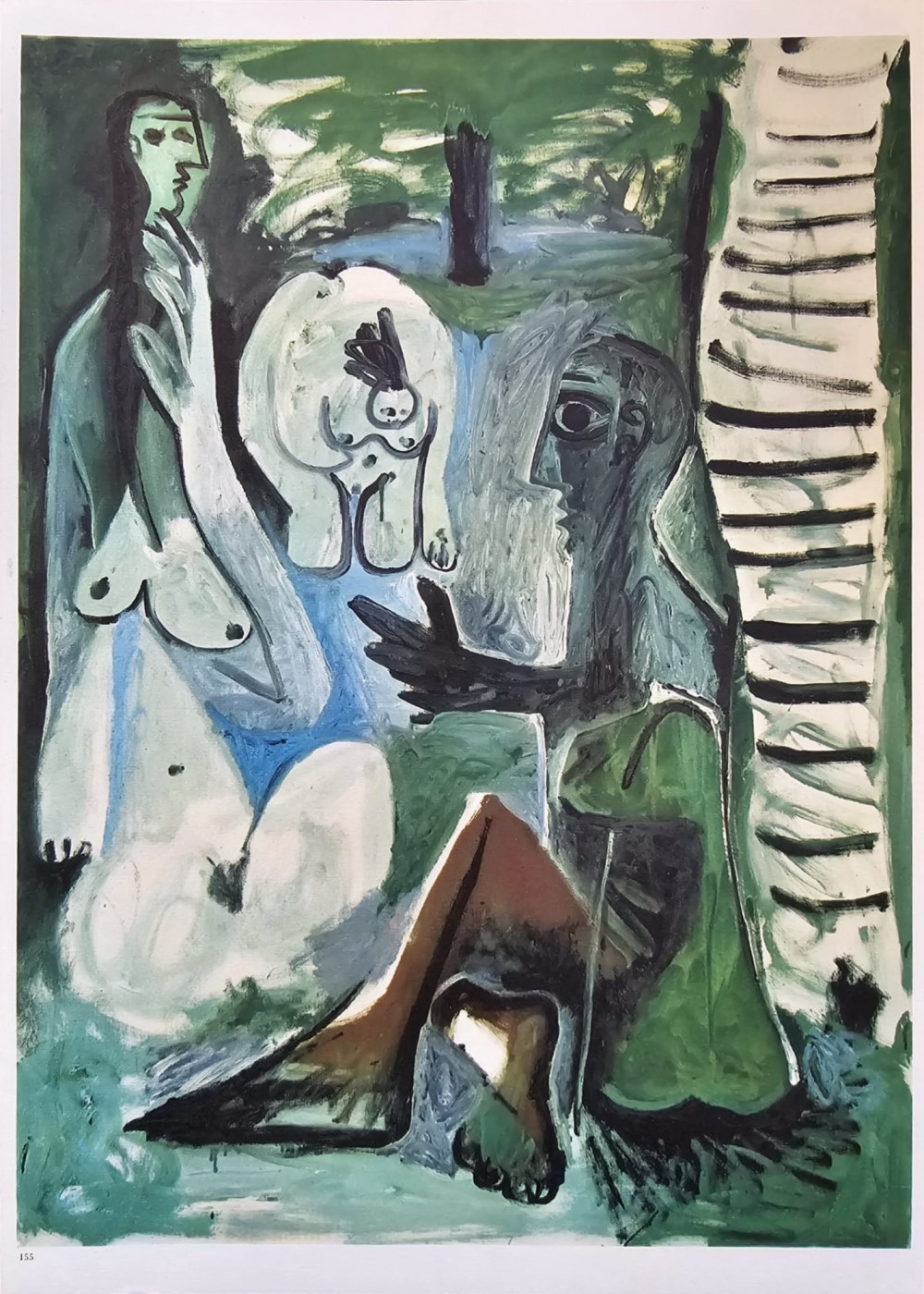 Te prace Picassa nawiązują do Le Dejeuner sur l'herbe (obiadu na trawie) Edouarda Maneta, który był pod takim wrażeniem tego dzieła, że spędził trzy lata pracując i przerabiając jego wariacje. Wykonał około 150 szkiców, 27 obrazów, 3 linoryty i 18 kartonowych modeli rzeźb.