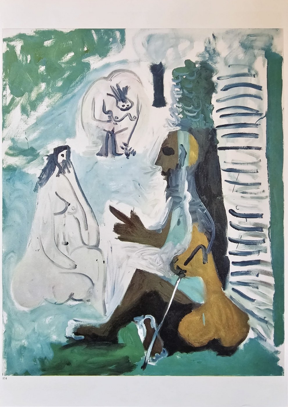 Litografia dwustronna z teki PABLO PICASSO - LES DEJEUNERS, wydana przez Cercle d'Art w 1962 roku w Barcelonie.