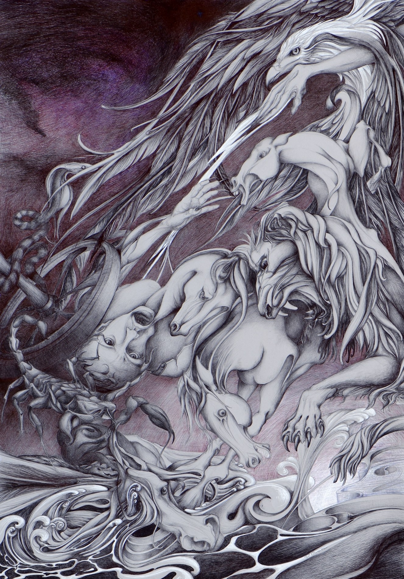 Patricia Cronier Zohar: „Rysując długopisem bezpośrednio na moim podkładzie, bez żadnej wcześniejszej konstrukcji, mogę swobodnie rysować i przenosić Cię w realny i jednocześnie wyimaginowany świat. Moje kreacje opowiadają historie, które powstają w tym samym czasie, kiedy rysuję. Mity i legendy są również bogatym źródłem inspiracji. Przetwarzam rzeczywistość, aby odsłonić mój sposób postrzegania świata, w którym wszystko się splata i łączy.”