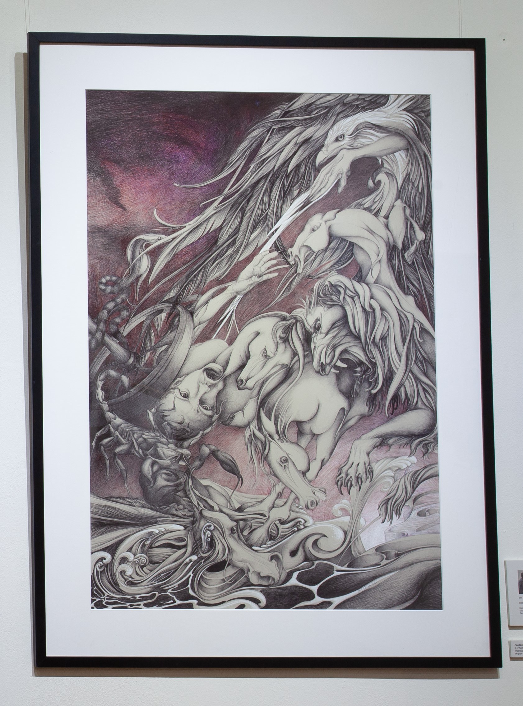 Pióro, długopis / papier, 100 x 70 cm, w oprawie: 120 x 90 cm