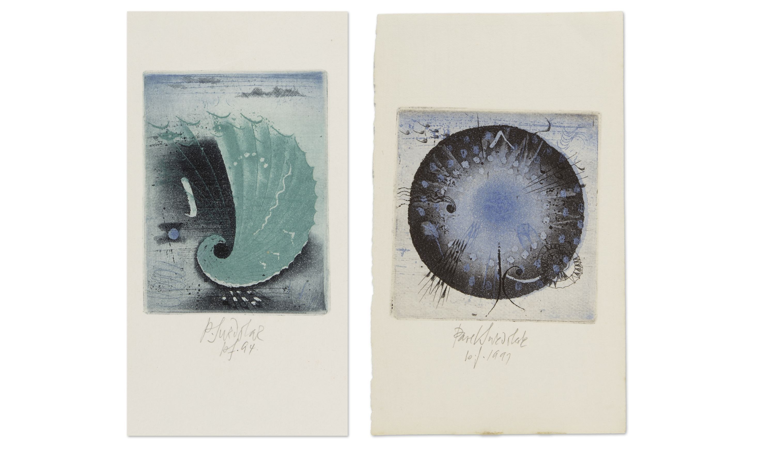 1991 and 1994 | technique: colored etchings on paper | 90 x 87 mm and 110 x 85 mm | signature: bottom middle | loose leaves