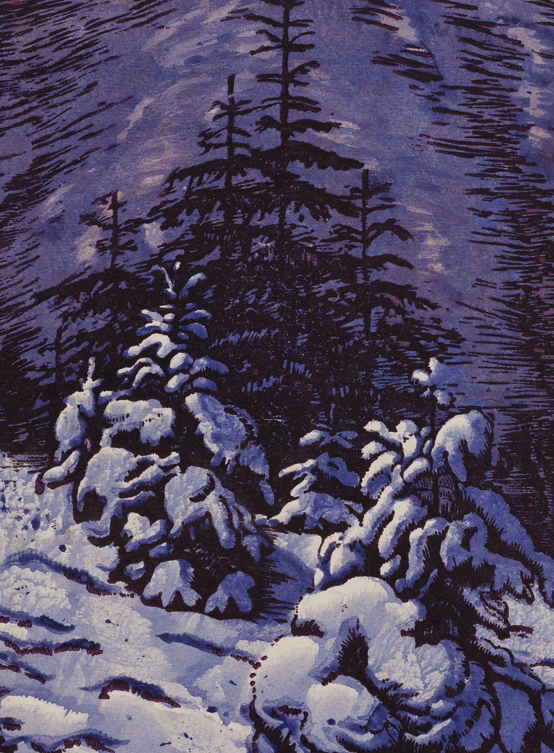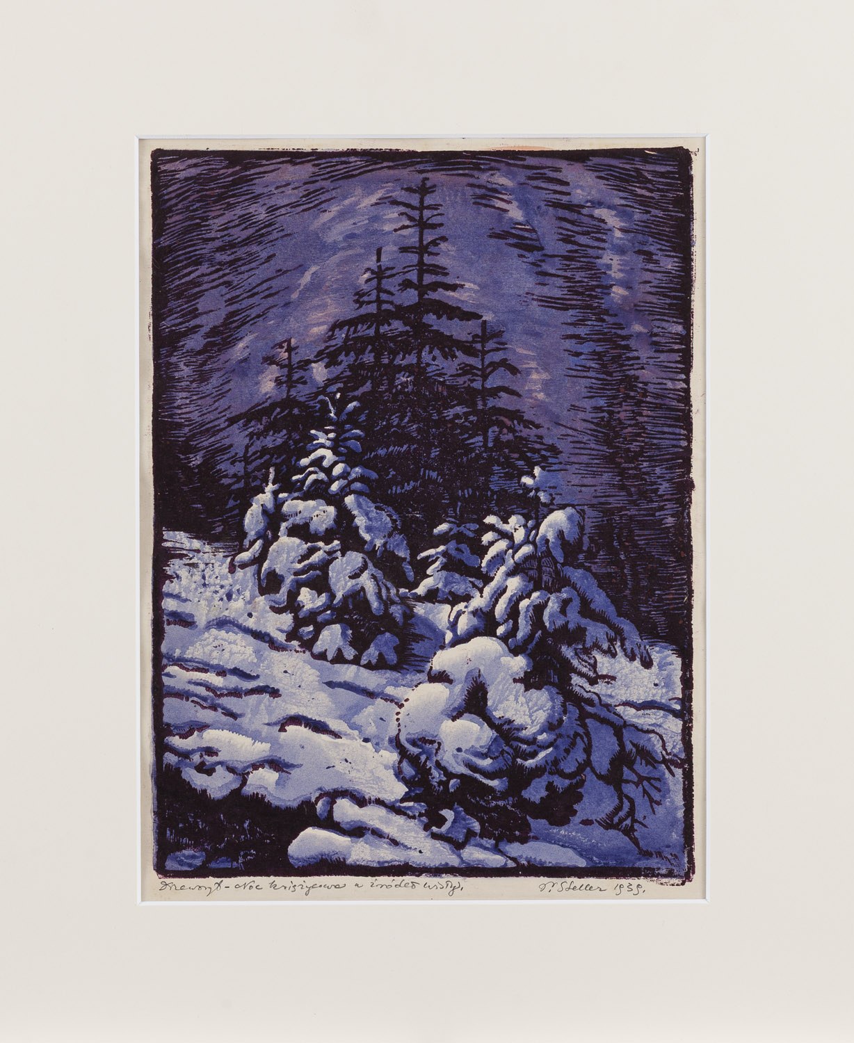 sygnowany, opisany i datowany u dołu ołówkiem.: 'Drzeworyt - Noc księżycowa u źródeł Wisły | P. Steller 1939'