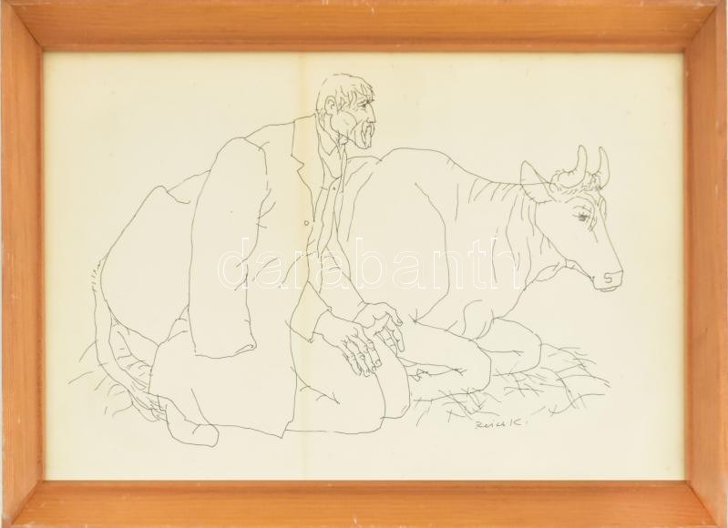 Reich Károly (1922-1988): Anya gyermekével. Nyomat, papír, Reich Károly nyomtatott aláírásával.21x29 cm