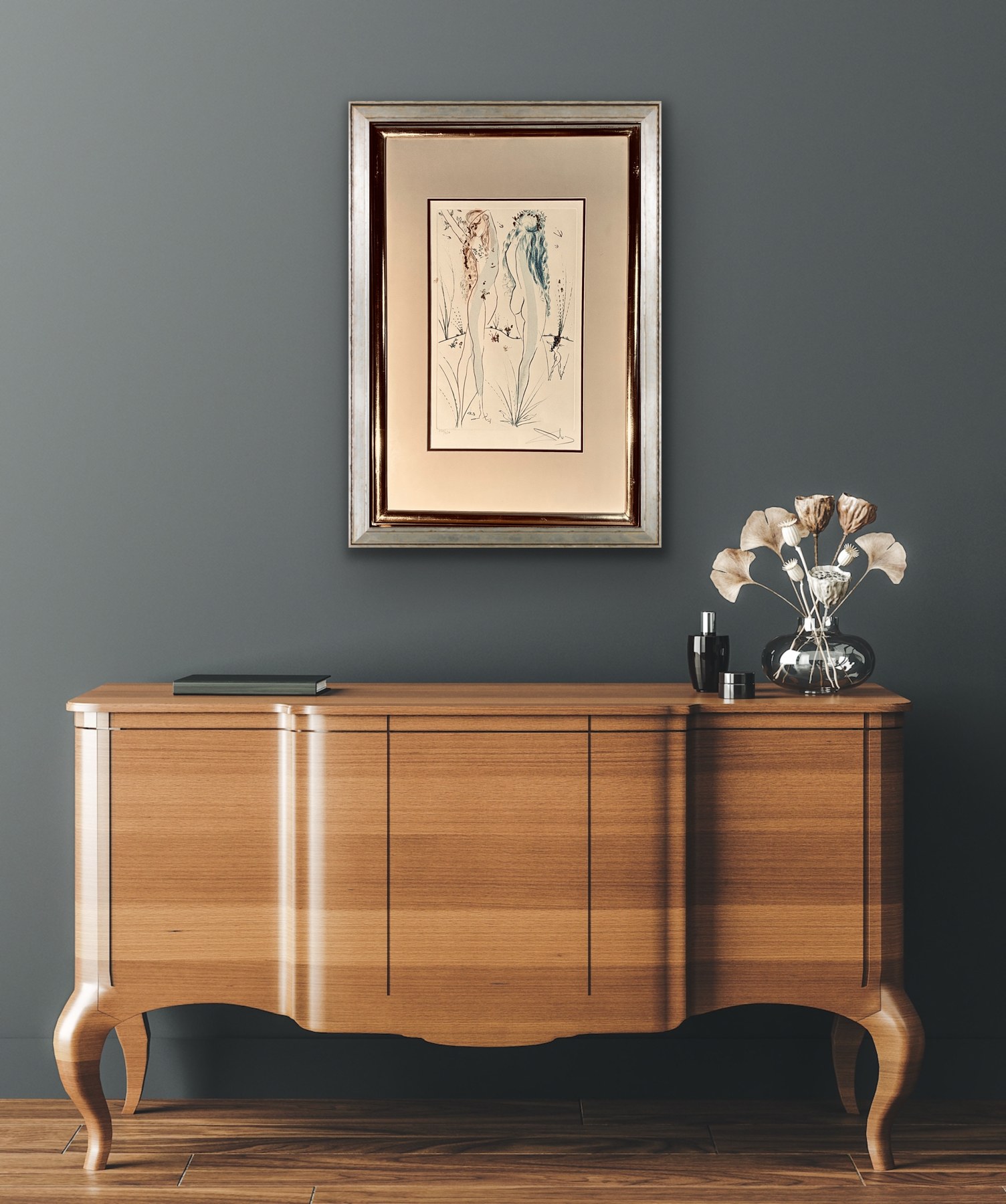 Dalí, jako ikona surrealizmu, wprowadził do tej pracy swoją charakterystyczną, oniryczną estetykę, łącząc biblijne inspiracje z fantastycznymi elementami. Dzieło przedstawia eteryczne figury z miękkimi, złotymi akcentami, co nadaje pracy mistyczny i romantyczny charakter, zgodny z tematyką "Pieśni nad Pieśniami".