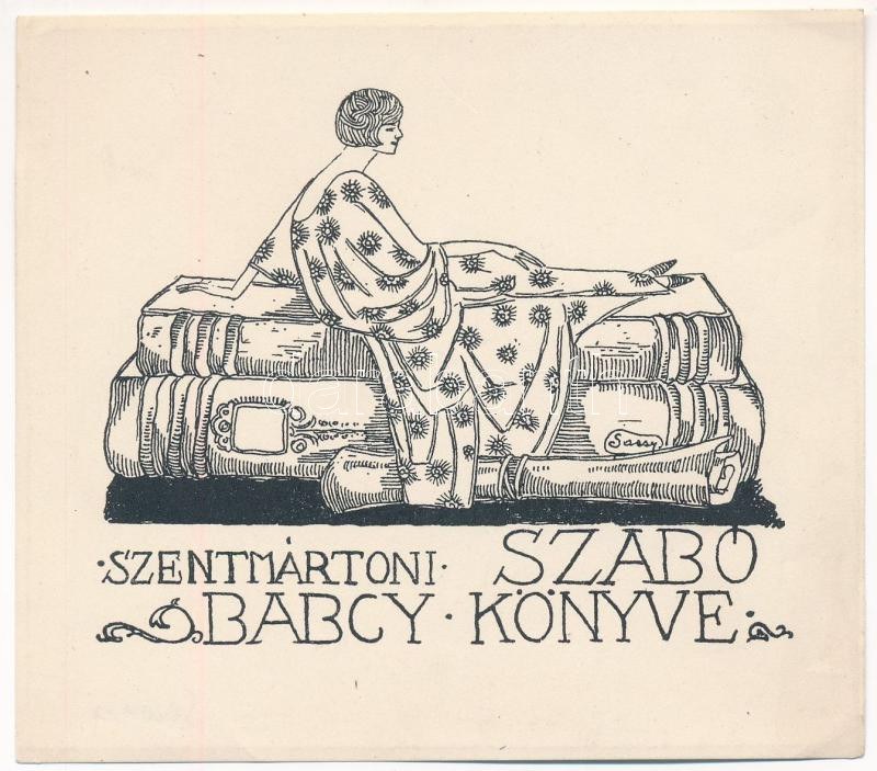 Sassy Attila (1880-1967): Szentmártony Szabó Babcy könyve (ex libris), klisé, papír, jelzett a klisén...