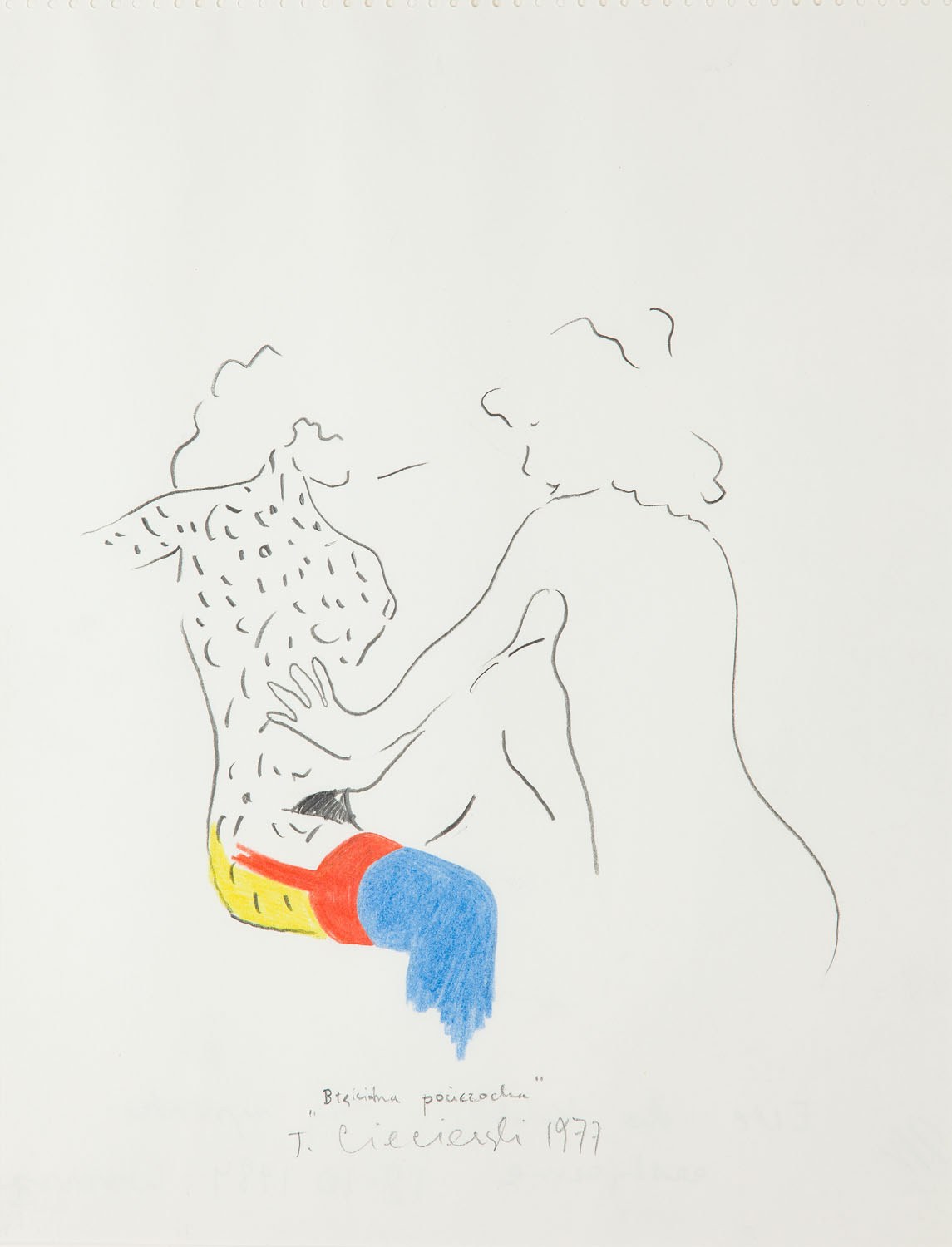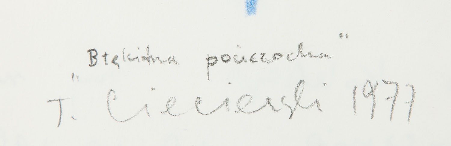 sygnowany, datowany i opisany u dołu ołówkiem: '"Błękitna pończocha" | T.Ciecierski 1977 '